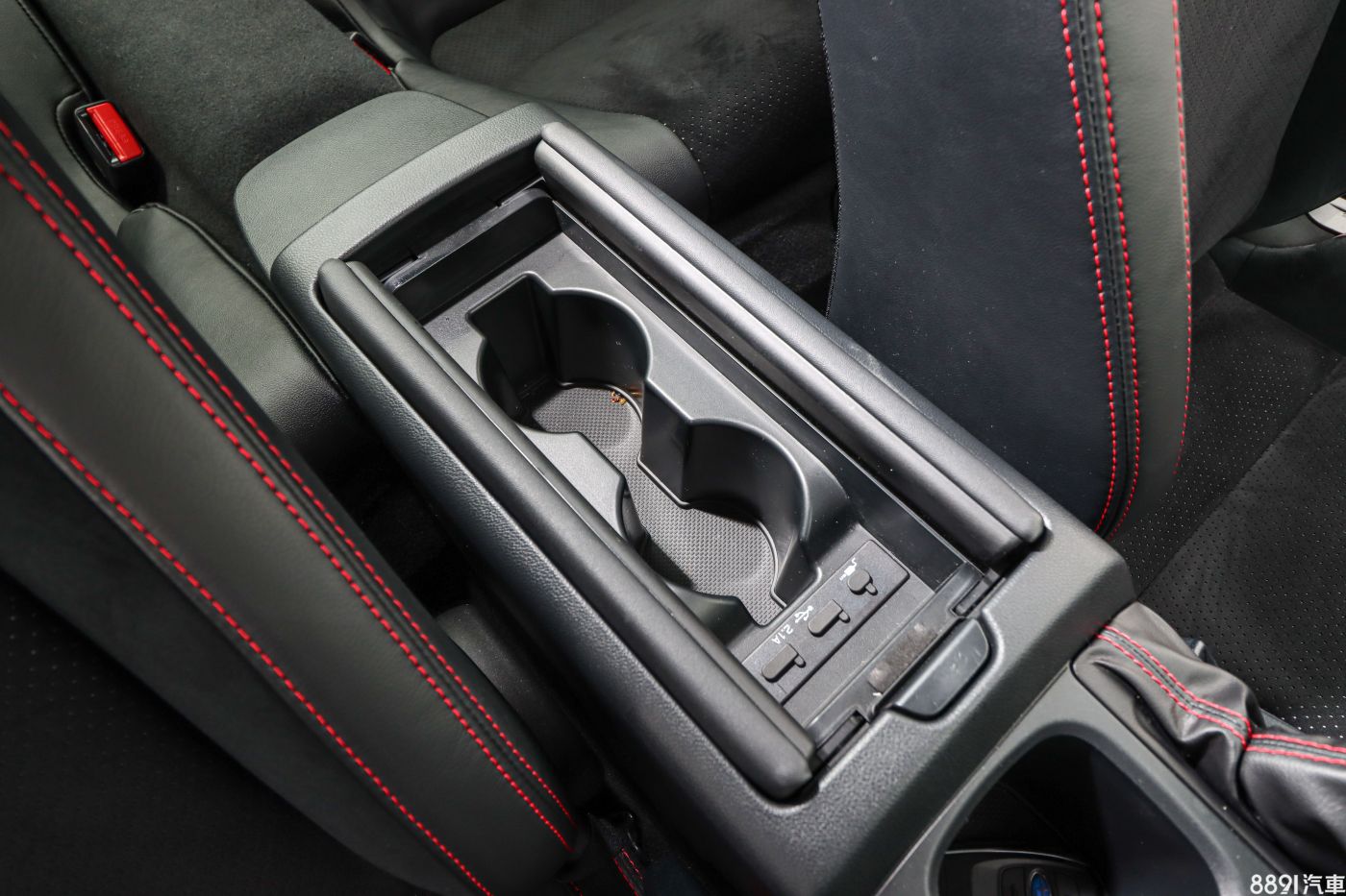 自排版除了在手煞車旁有置杯架外,打開中央扶手還有兩個可用,裏頭也附有USB、AUX in插孔。