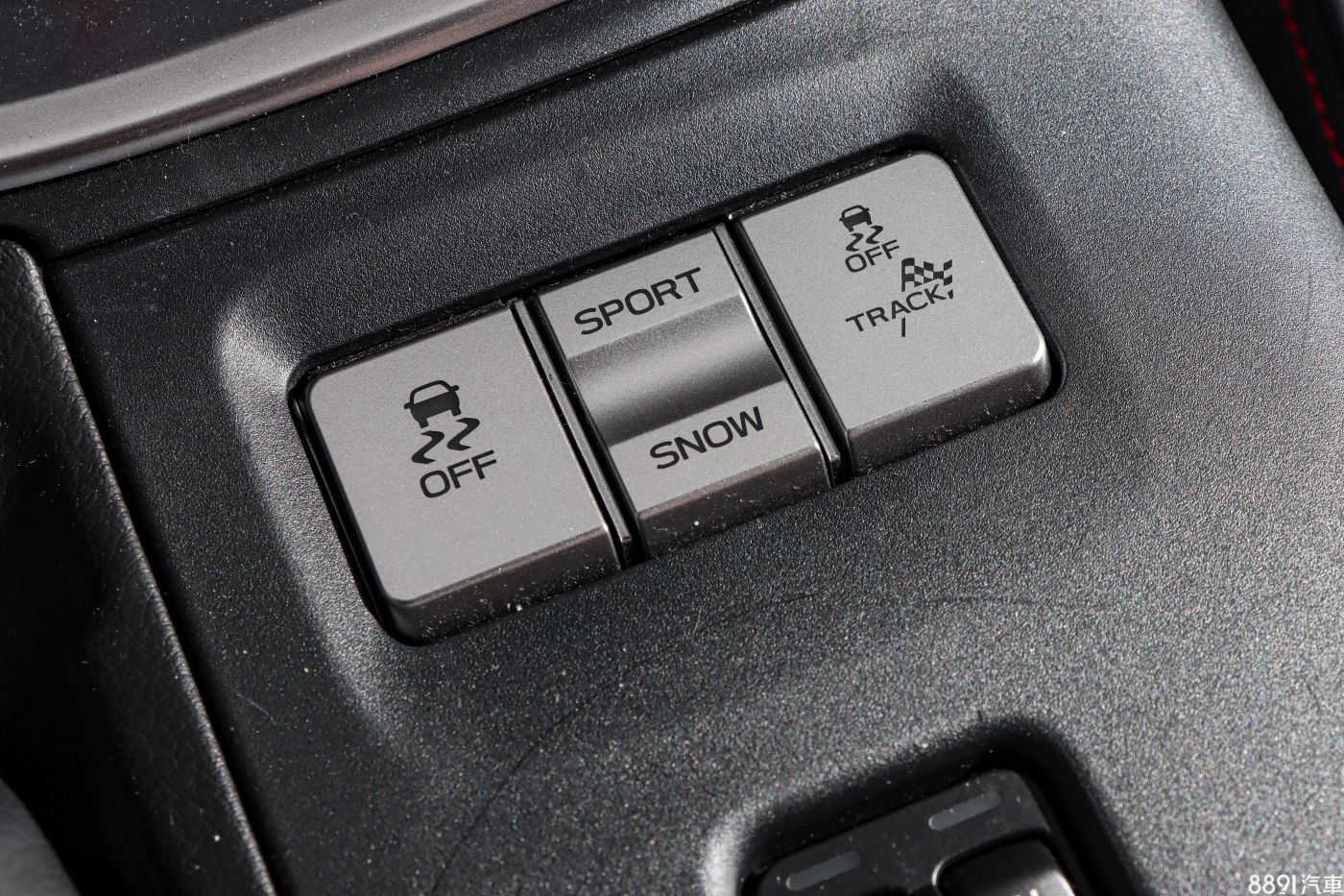 6 AT車型比6 MT多出Sport、Snow駕駛模式,右邊Track長按會關閉第一段循跡系統,長按左邊則近一步循跡全關,連駕駛輔助系統也會一併關閉,如果你想甩尾使壞的話,按下去就對了。