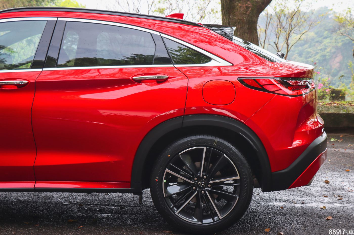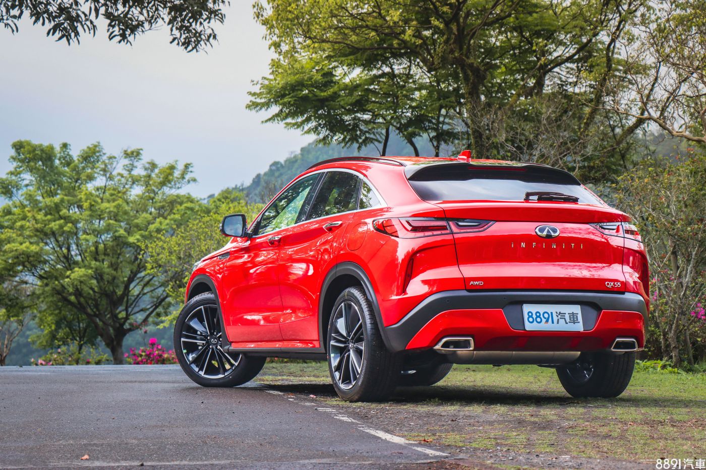 QX55最迷人便是這車尾線條,光影遊走鈑件,紅色鮮豔欲滴,一整天的試駕過程忍不住回頭再三。不過照片中的獵日紅得加價2萬元,另一款新色板岩灰則僅需加價1萬元,其餘黑、灰、白、藍車色無需加價。