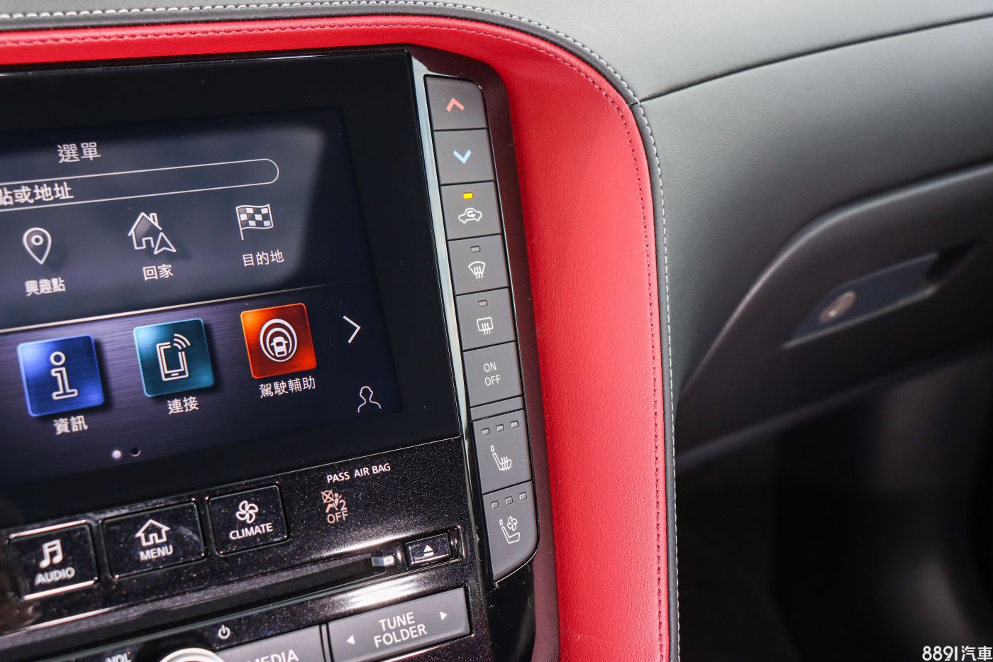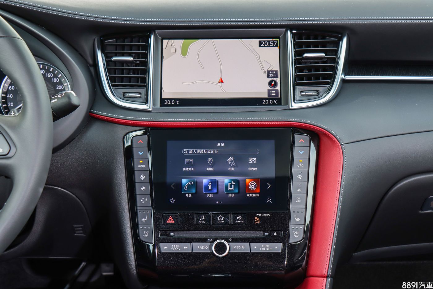 上下雙螢幕設計從Q50、QX50一路延續至QX55身上,略顯繁雜的介面操作與畫質確實比不上新世代對手,但上層螢幕主要負責導航、Apple Carplay/Android Auto,下層螢幕則負責各式車輛操作,各司其職習慣了之後倒也還算順手。