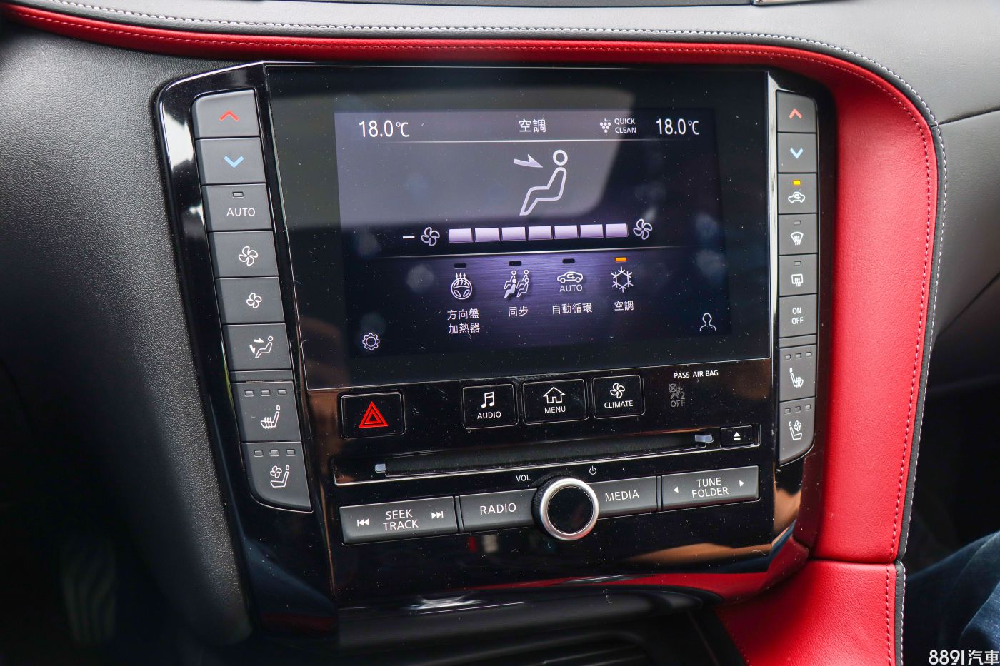 實體按鍵集中在下方螢幕四周,空調、音響操作都能快速達成,無需進入選單慢慢查找,算是傳統按鍵的一大好處。三區恆溫空調、雙前座冷熱通風座椅、高階Bose音響在QX55身上列為標配,夠享受。