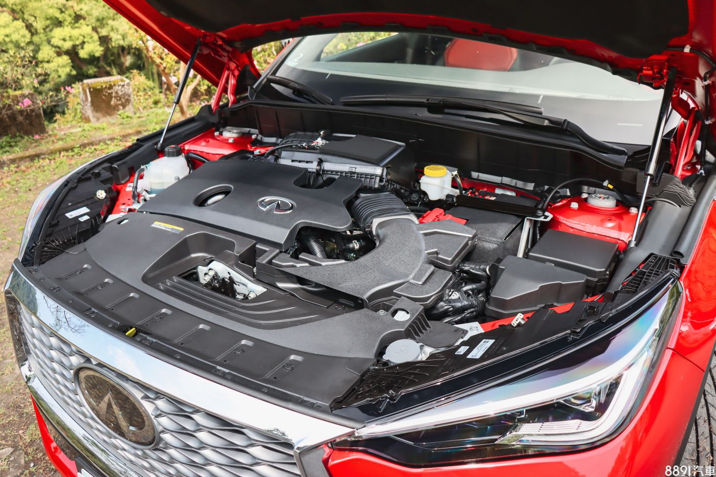 引擎蓋下這具VC-Turbo心臟是獨步全球的「可變壓縮比」渦輪引擎,為2.0升直列四缸設定,透過獨特的曲軸連桿,壓縮比可在8:1到14:1之間無段變化,搭配供油、進排氣時機不斷調整燃燒狀態,兼顧節能與性能兩種截然不同輸出狀態。最大馬力268hp/5600rpm、峰值扭力38.8kgm/4400rpm,能源局平均油耗為11.3km/L。