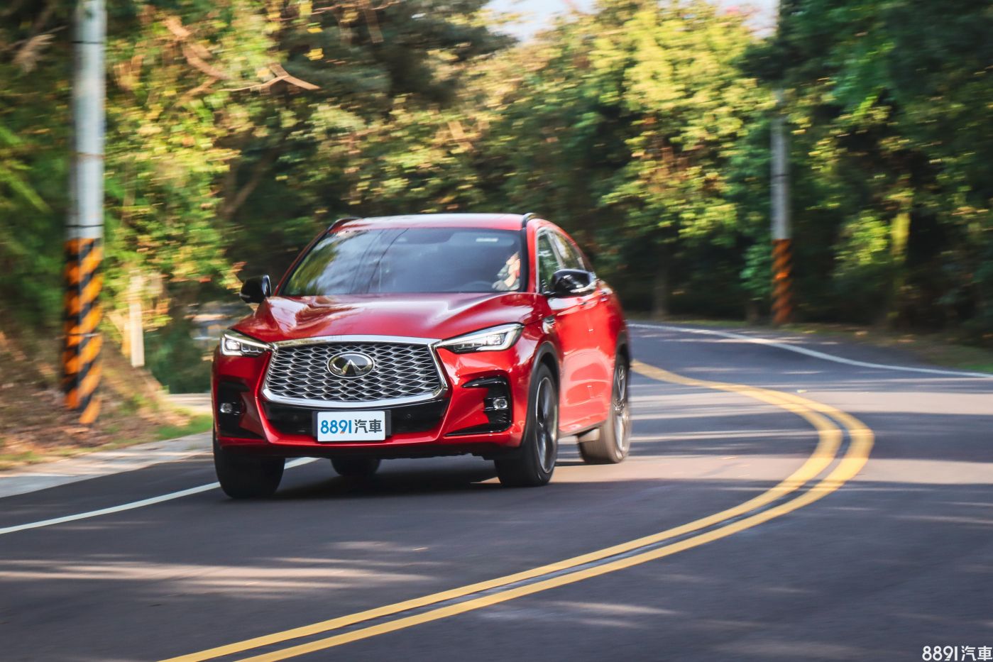 一旦將場景轉移至山路,QX55便開始有些力不從心,入彎明顯感到車頭較為沉重,入彎速度、路線都得謹慎控制,柔軟的懸吊讓車身動態略顯遲滯,得要耐心等待車身回穩才能轉進下個彎道。對於乘客來說,一切「慢慢來」的動態或許很舒適,但卻相當考驗駕駛對於龐大車身的控制能力,油門、煞車、轉向都急不得,才能柔順劃過每個彎道。