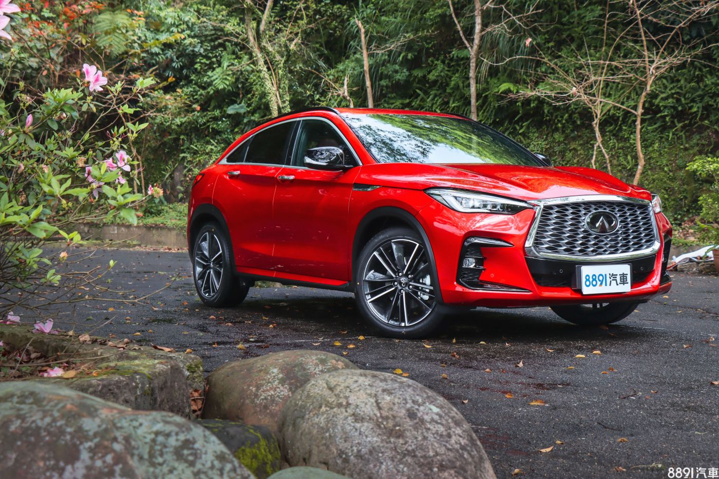 Infiniti QX55正面迎擊X4、GLC Coupe等歐系對手,這輛市場唯一的日系豪華跑旅相較對手多了分日本特有的精緻細膩,配上獵日紅車色,在任何場景都有出乎意料的吸睛魅力。外型上,Infiniti向來善於揉合豪華與運動,即便是訴求家用的SUV QX50也隱隱散發運動氣息,換上斜背線條、多了「跑旅」身分的QX55自然增添幾分「熱血氛圍」,當然,那是指外型而言,實際開起來是否同樣熱血讓我們容後再敘。