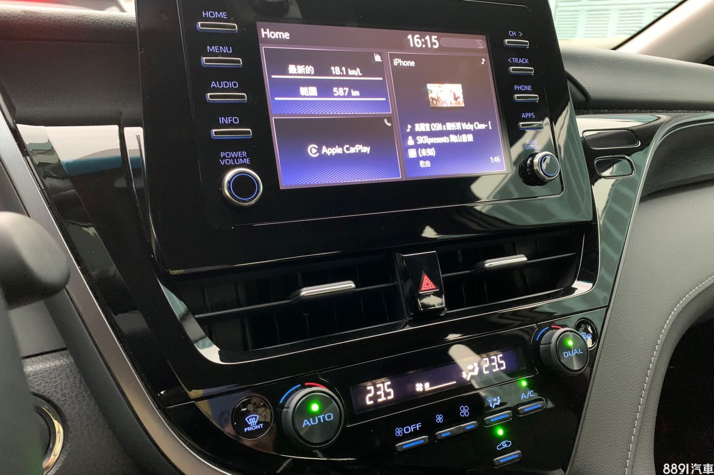 車機內建只有顯示油耗、藍芽、倒車顯影等...導航部分需要透過Apple CarPlay連接手機,但沒有提供無線連接的功能有點小可惜;我蠻喜歡原廠JBL音響重低音的表現,整體音質有中上水準。