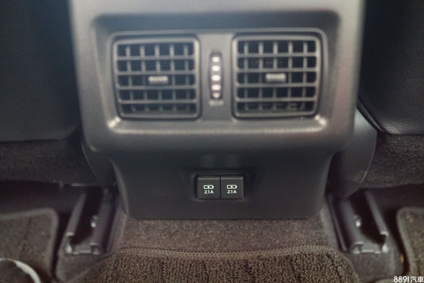 後座具備冷氣出風口以及兩個2.1A的USB插孔,不過底板中央隆起讓腳無法平踏有點小可惜。