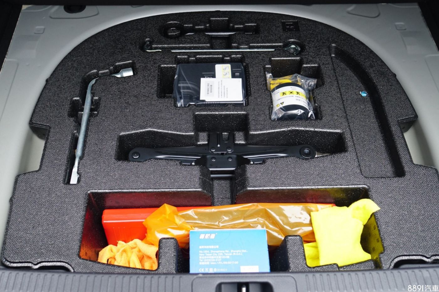 後廂底板下沒有備胎,取而代之的是千斤頂等補胎工具。