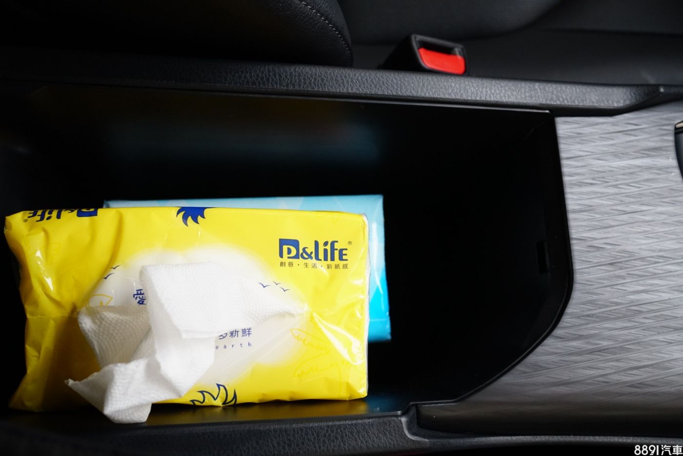 中央扶手內部空間剛好可以放下兩包衛生紙,比較可惜的是沒有配置任何USB或電源連接孔。