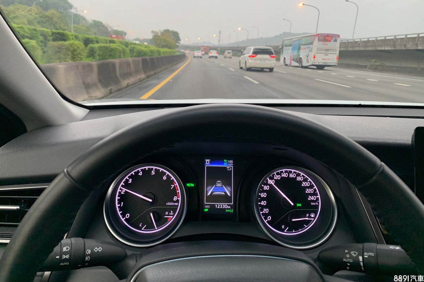 有了全速域跟車的輔助後,在枯燥乏味的長途車程中減低不少駕駛人的負擔,把跟車距離設定至最大距離是最舒服的(上圖為最大跟車距離),比較不會驟停也不會急加速,即使有人插隊進來,車子也不會突然急煞車。