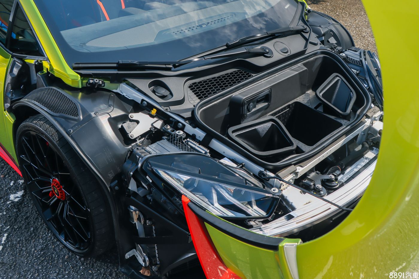這來自Super Trofeo EVO、GT3 EVO廠車的設計,對市售車來說,會增加維修更換成本,但你覺得Huracan STO車主會在意嗎?另外為了提升車頭下壓力、增加車頭內冷排撞風散熱,車頭設計全新的空氣力學路徑,氣流從保桿氣壩處進入,帶著內部冷排的熱能,再從車頭上方排出,散熱又提升下壓力,至於嚴重壓縮到車頭置物空間,誰在乎呢?
