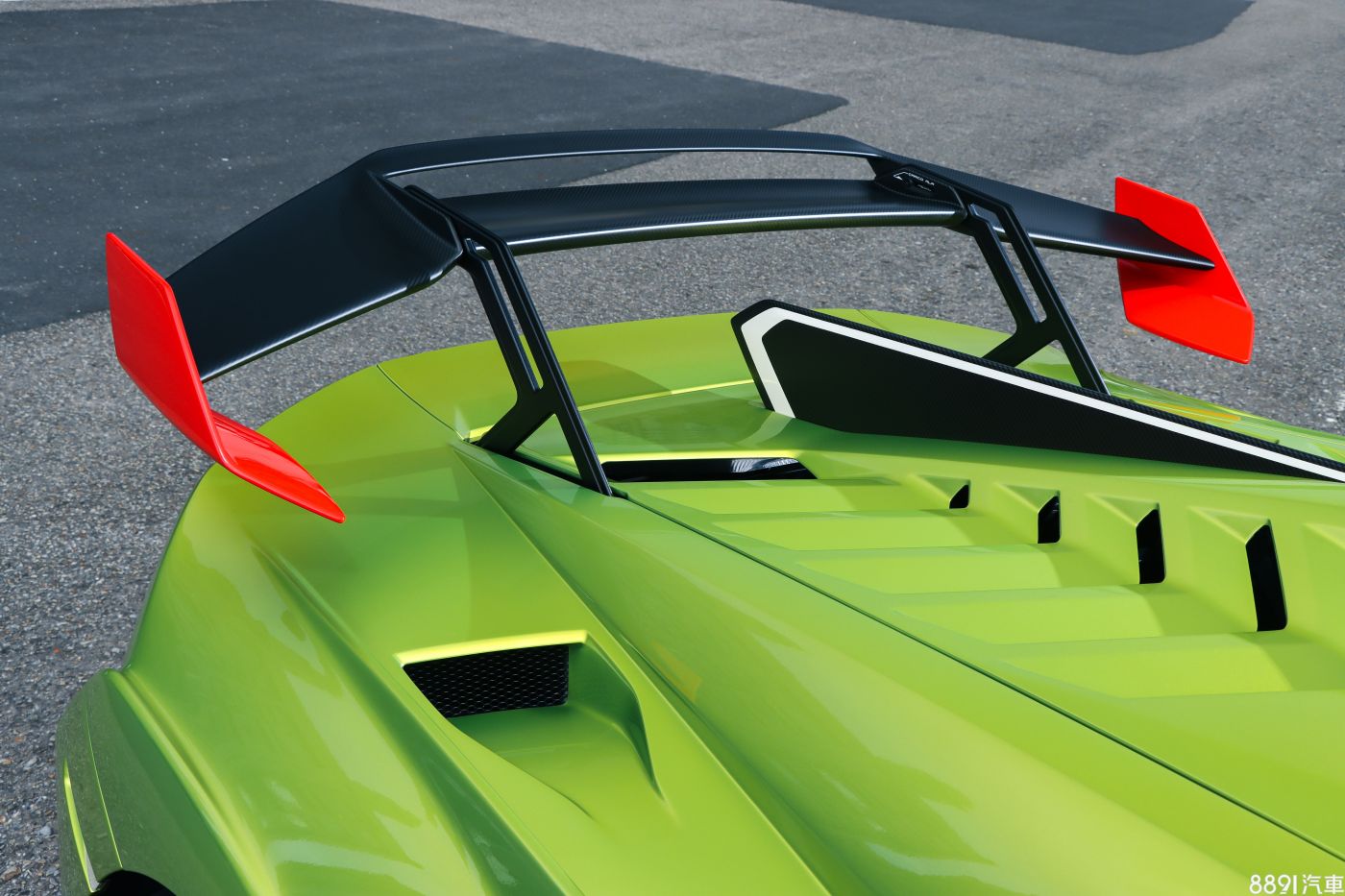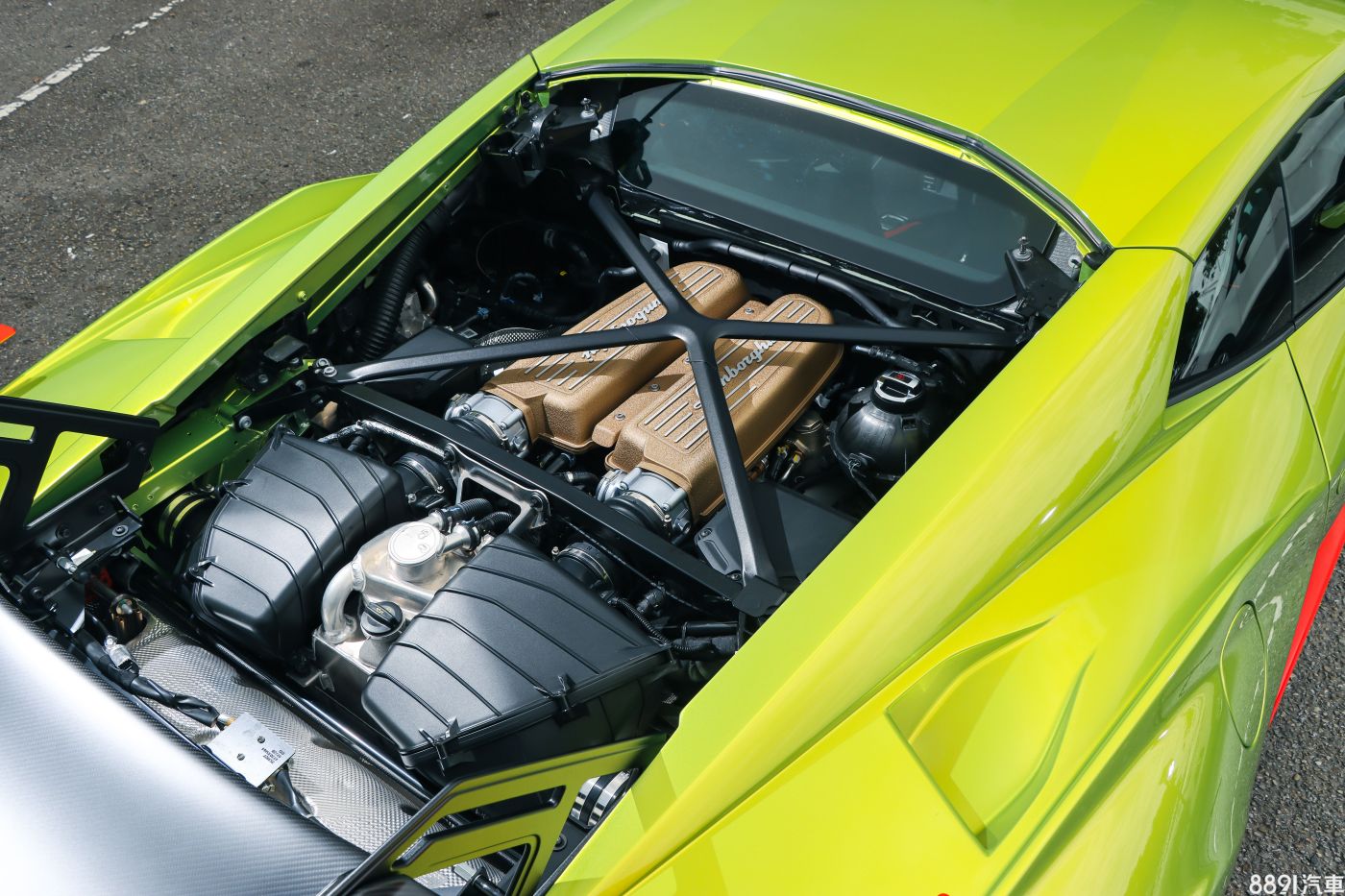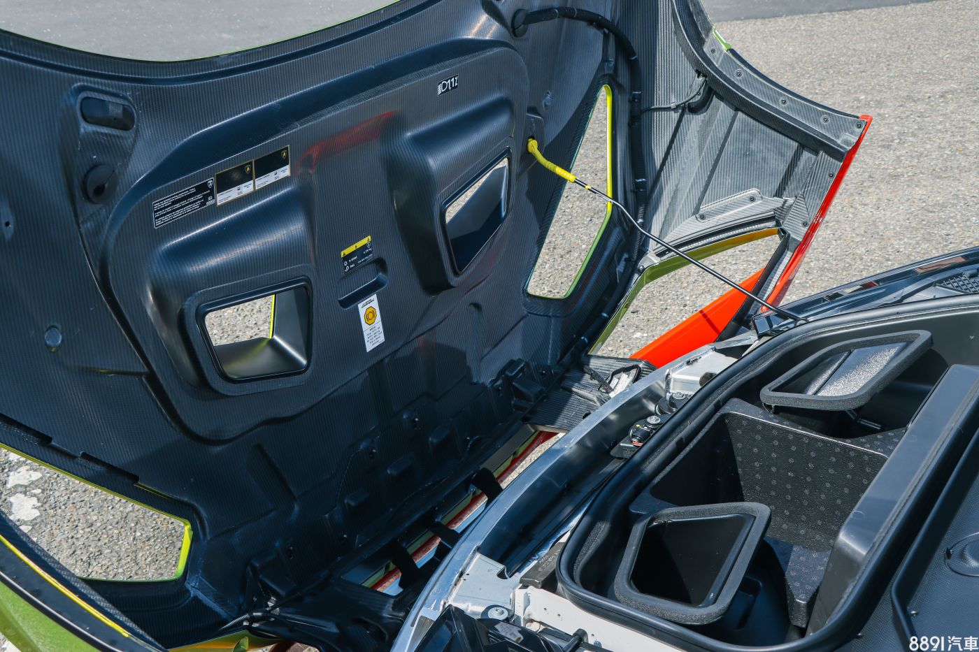 賽場上為了維修、換零件方便,引擎蓋是整片卸下,Huracan STO延續也毫不意外,碳纖維製作拿起來不吃力,到是很怕手滑,讓引擎蓋掉落敲到。