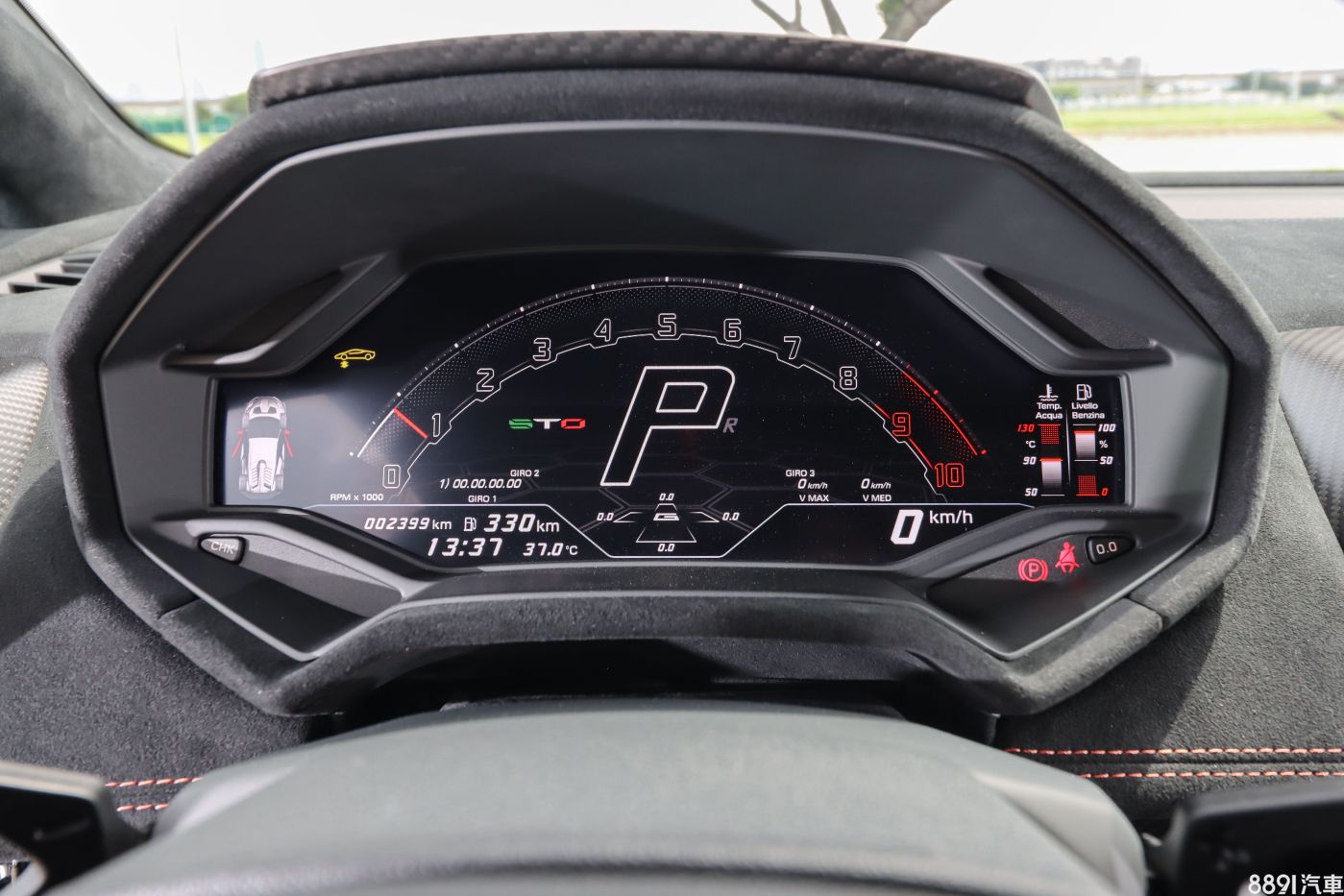 不過呢,後方視野就不是這麼一回事了!碳纖維引擎蓋的造型,大量遮蔽了後視野,這是作為道路版賽車所需要的妥協,還好這輛Huracan STO配有倒車顯影,跟一般Huracan一樣顯示在液晶儀錶,倒車不至於受到明顯影響。