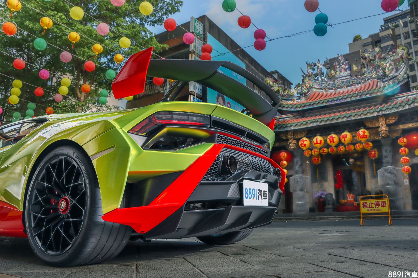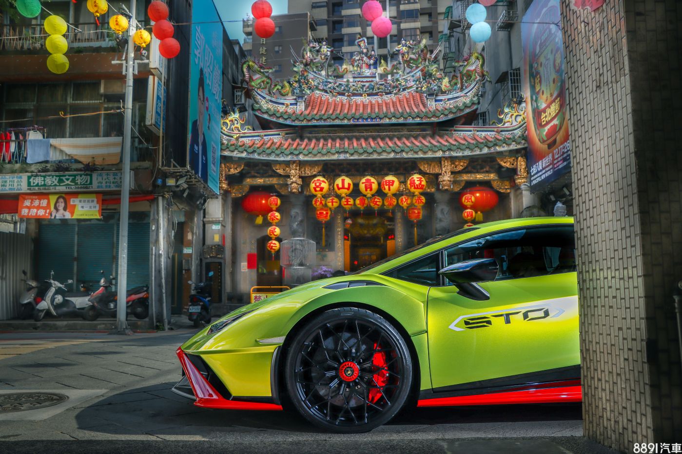 艋舺青山宮是萬華著名廟宇,每當青山靈安尊王壽誕,都會有盛大的迎神活動,且為台北市三大廟會之一,而艋舺青山宮同時也是台北市古蹟之一。開著Huracan STO前來參拜,但四周車位難尋,就算有,也都狹窄、臨車緊貼,你不會想把你的超跑停進去,只好路邊暫停一下,也因此獲得視覺衝突的合影。