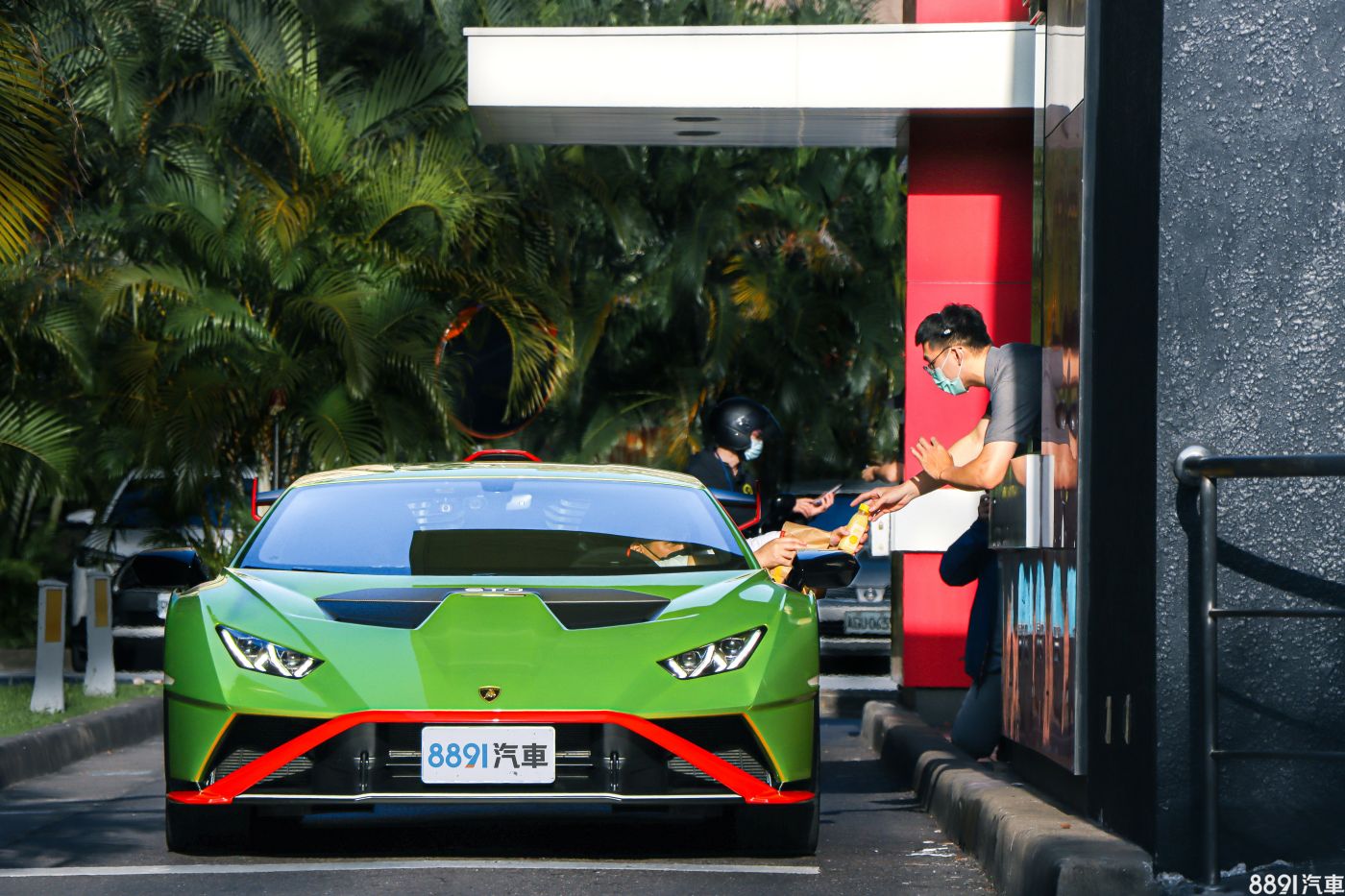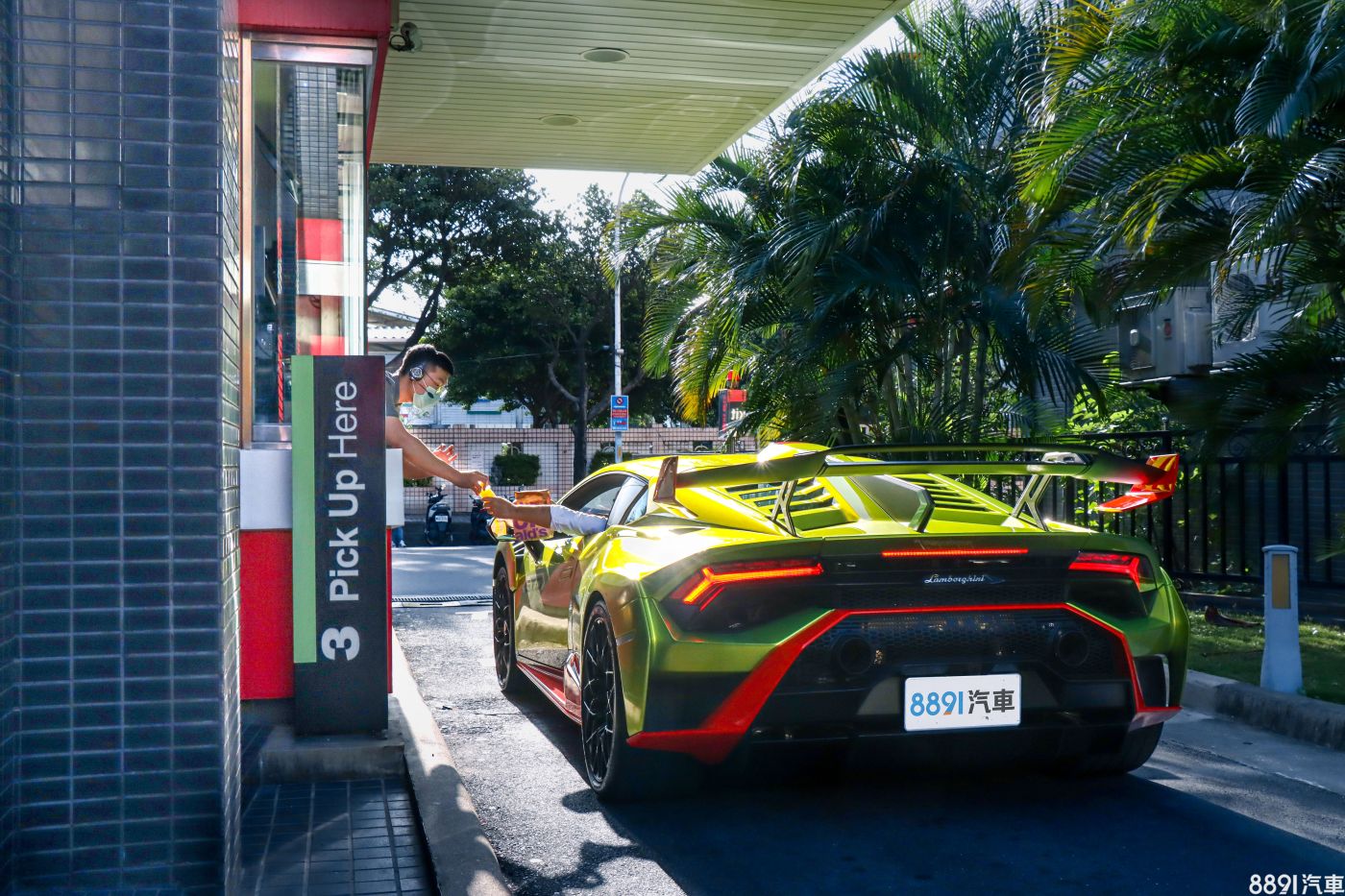 開去得來速對Huracan STO來說也是一個挑戰,低趴的車身,點餐時必須伸長脖子對著對講機,有那麼一點狼狽!更別說付錢結帳了,掏錢可以掏一張紙鈔,但找零時最好雙手捧接,不然掉落要下車撿零錢就尷尬了!