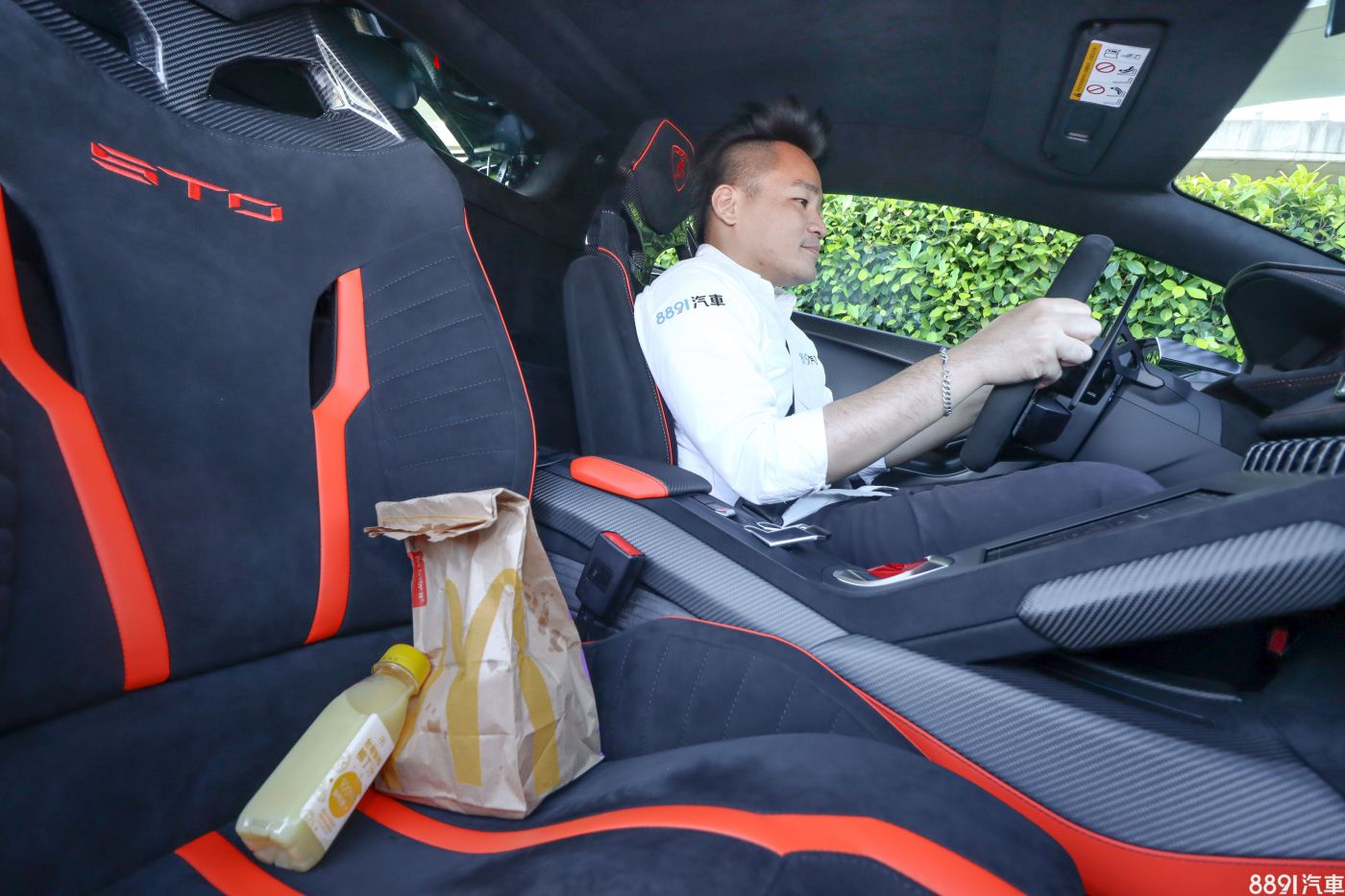 如果你的套餐飲料是可樂,那就糗大了,因為這輛道路版賽車完全沒地方讓你放可樂,還好我選擇瓶裝柳橙汁,等紅燈時喝一口,蓋緊放在副手座上不怕打翻。