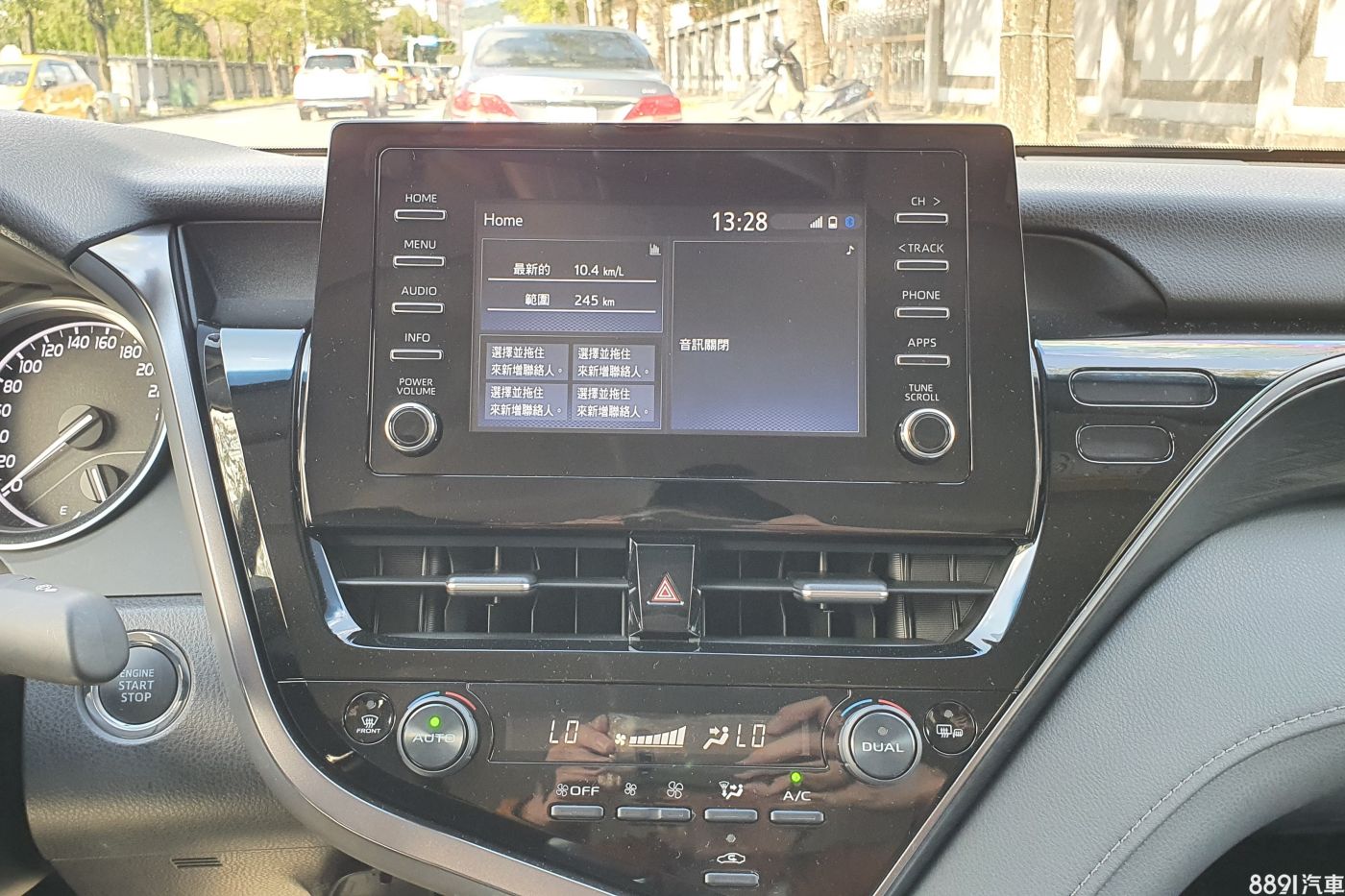 而T字中控台上最顯眼的自然是小改後移至冷氣口上方的車機了,雖然看上去有點土炮感,但其實它是原裝進口的而不是車O仕的產品,連接Apple CarPlay時的順暢度也非常好,唯獨車機螢幕實體按鍵與邊框的佔比太大,顯得可視畫面感覺變得很小。