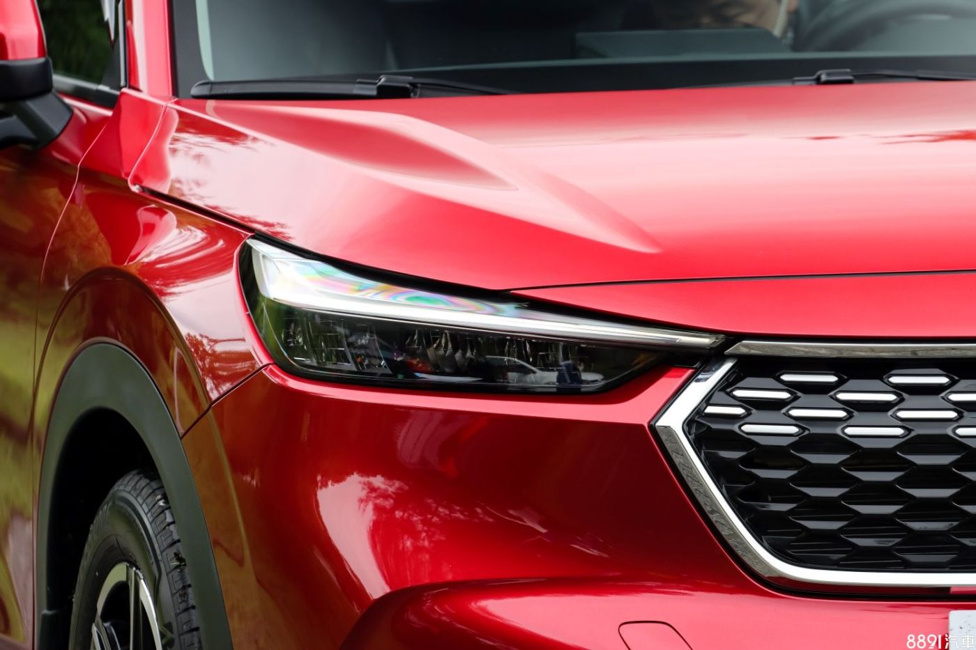 新款HR-V採用輪廓細長的頭燈,搭配自水箱罩鍍鉻飾條向外延伸的LED日行燈,讓車頭視覺上更往兩側拉伸,全車系均為LED光原設定,並具備AHB自動調整遠光燈。