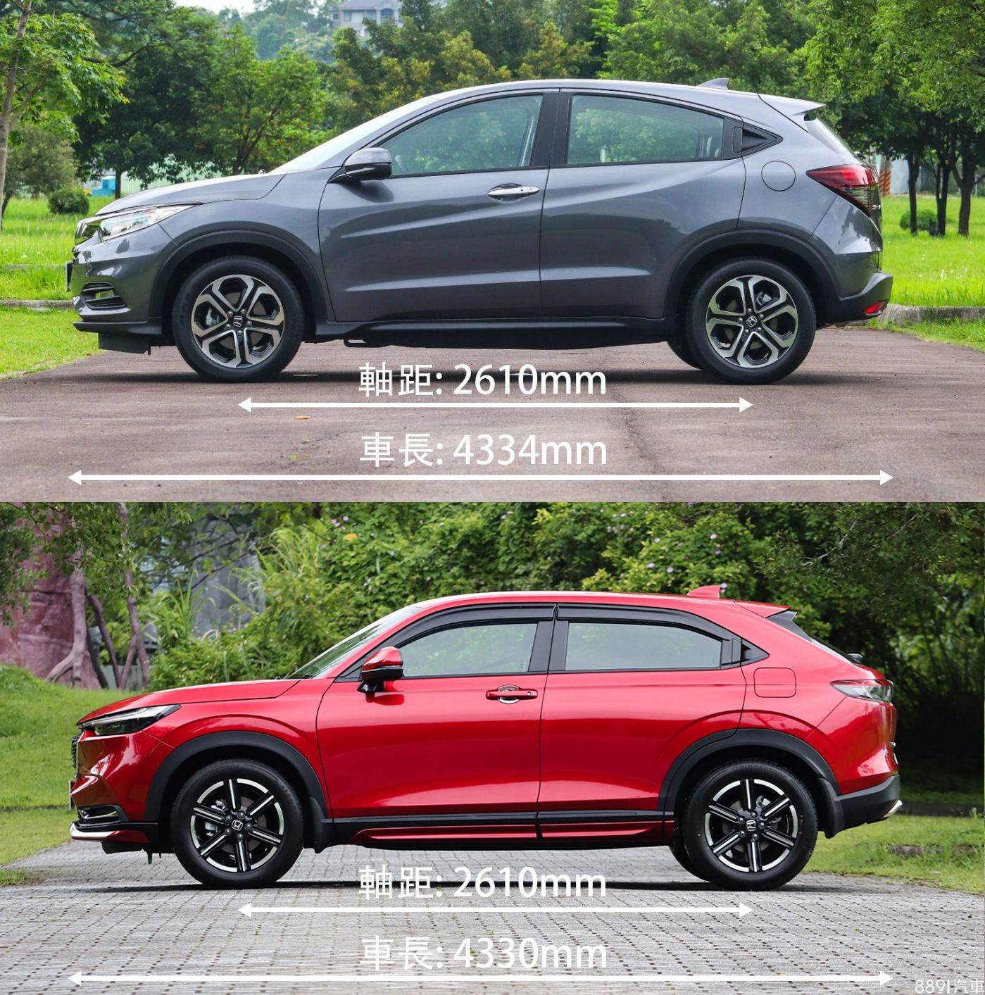 光用肉眼看,可能會覺得HR-V長大了,但其實原廠數據並不完全是這樣,新車相比舊款車長反到縮短4mm、車身高度也降低15mm,僅有車寬增加18mm,並維持2610mm的軸距不變,而之所以會有新HR-V長大的「錯覺」,個人認為應該與整體線條變得更加圓潤飽滿有關。