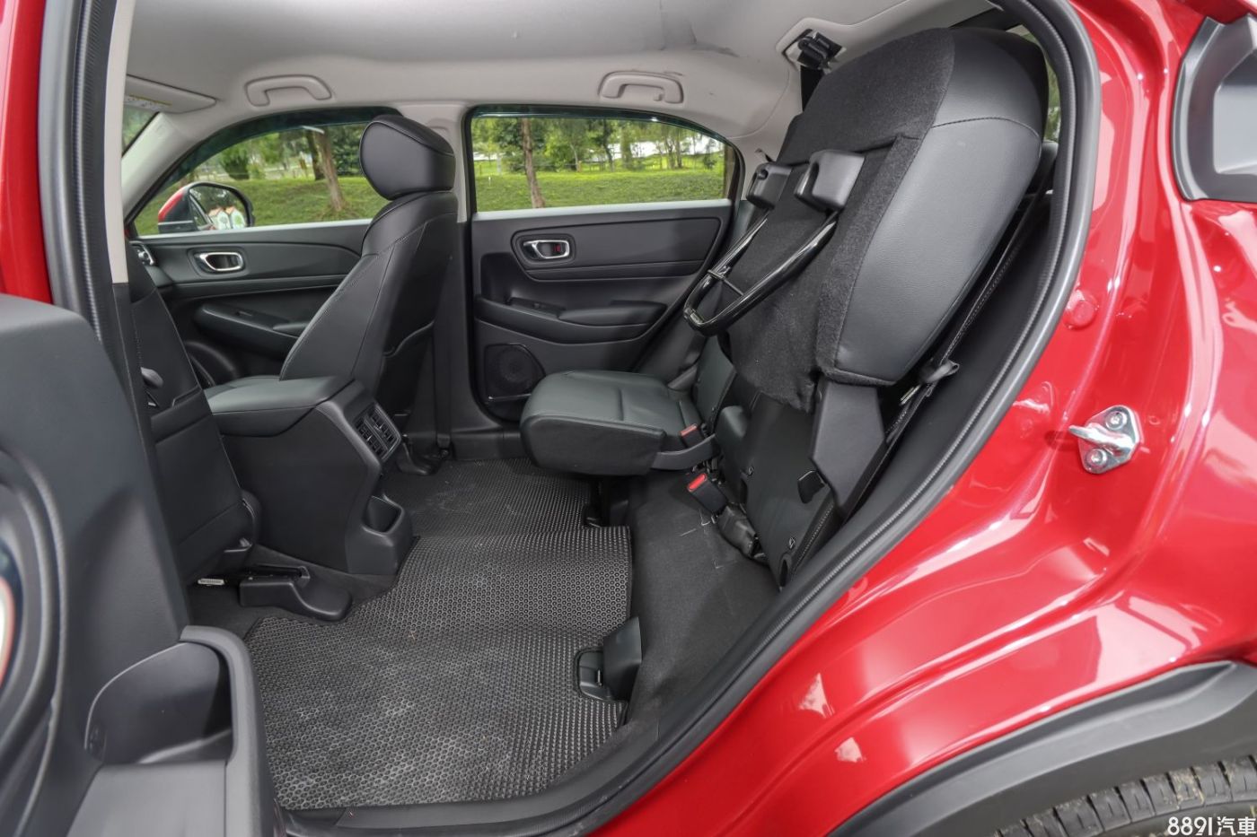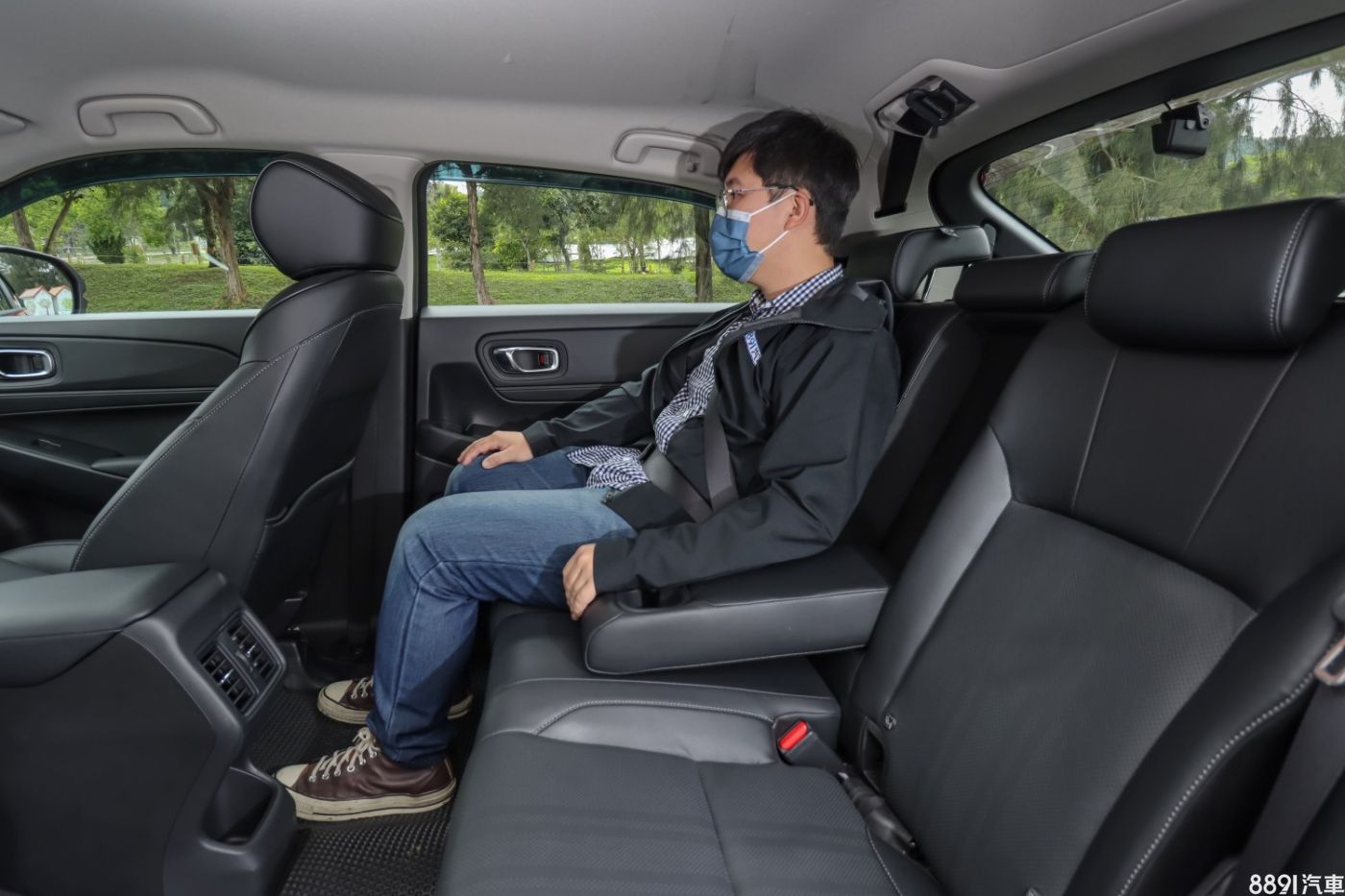 HR-V的後座空間在同級CUV中一向有「口碑」,大改款雖然軸距維持不變,但原廠提到膝部空間增加35mm,如圖所示,以身高172cm的成人入座後,寬敞度確實沒話說,而後座泡棉設定與前座相當,搭配合宜的椅背角度,乘坐感受亦比舊款舒適,唯獨椅墊長度略有不足,稍微影響大腿的支撐力,久坐下來可能會比較累人。