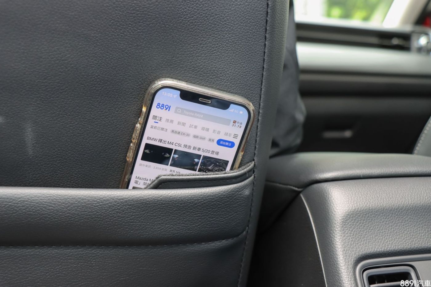 新HR-V後座的置物機能也有做優化,像是車門板與中央扶手都有新增置杯架,使用上更加便利,另外椅背的地圖袋上也設計有小巧思,專門用來收納手機,如此一來再也不怕手機「消失」在地圖袋內找不到!