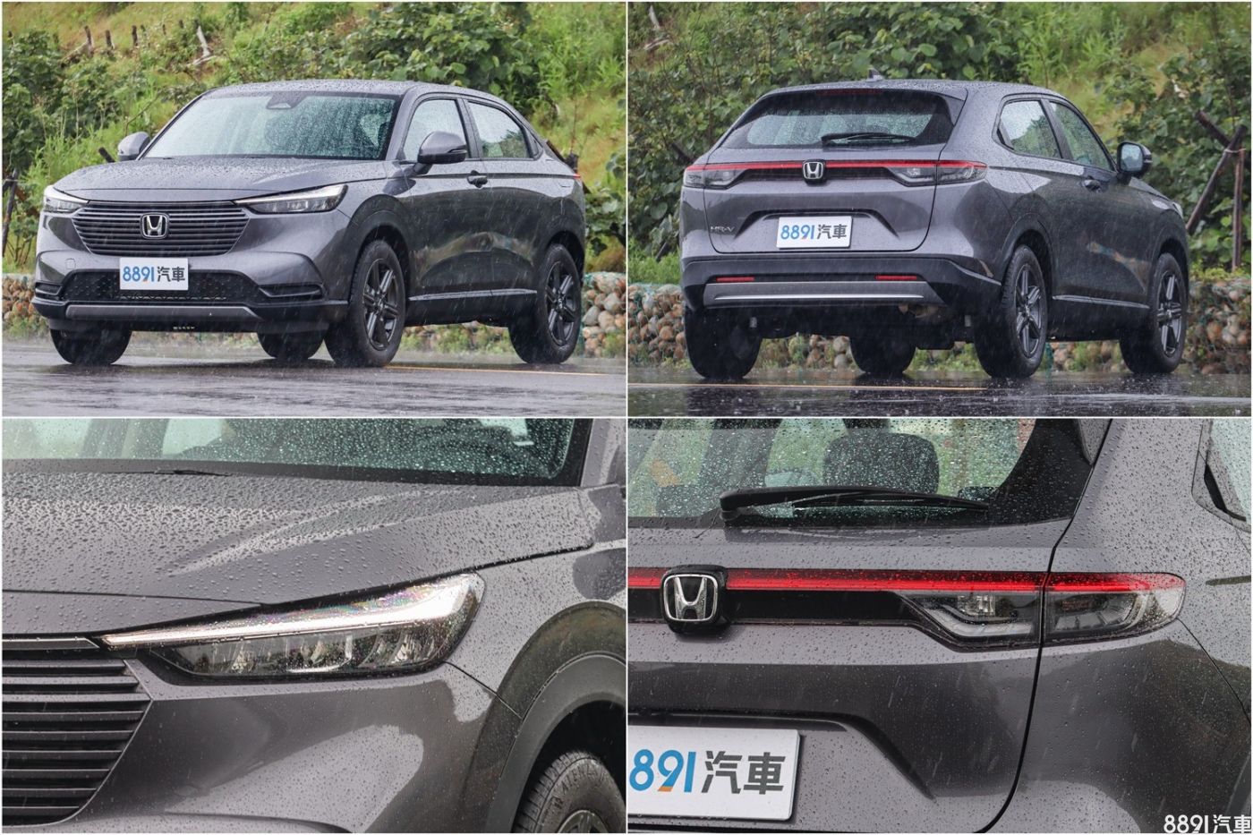 HR-V外型圓潤飽滿、線條較為平直,車頭如同「百葉窗」的水箱護罩以及橫貫式尾燈,都是大改款後的視覺焦點,車側更加強調Coupe SUV的身形,並保留隱藏式後車門把手的一大特色。車外照明部分包含頭尾燈、日行燈均採LED光源,並具備AHB自動遠光燈輔助,單看兩車外觀與細節處理,HR-V的精緻度上略勝一籌。