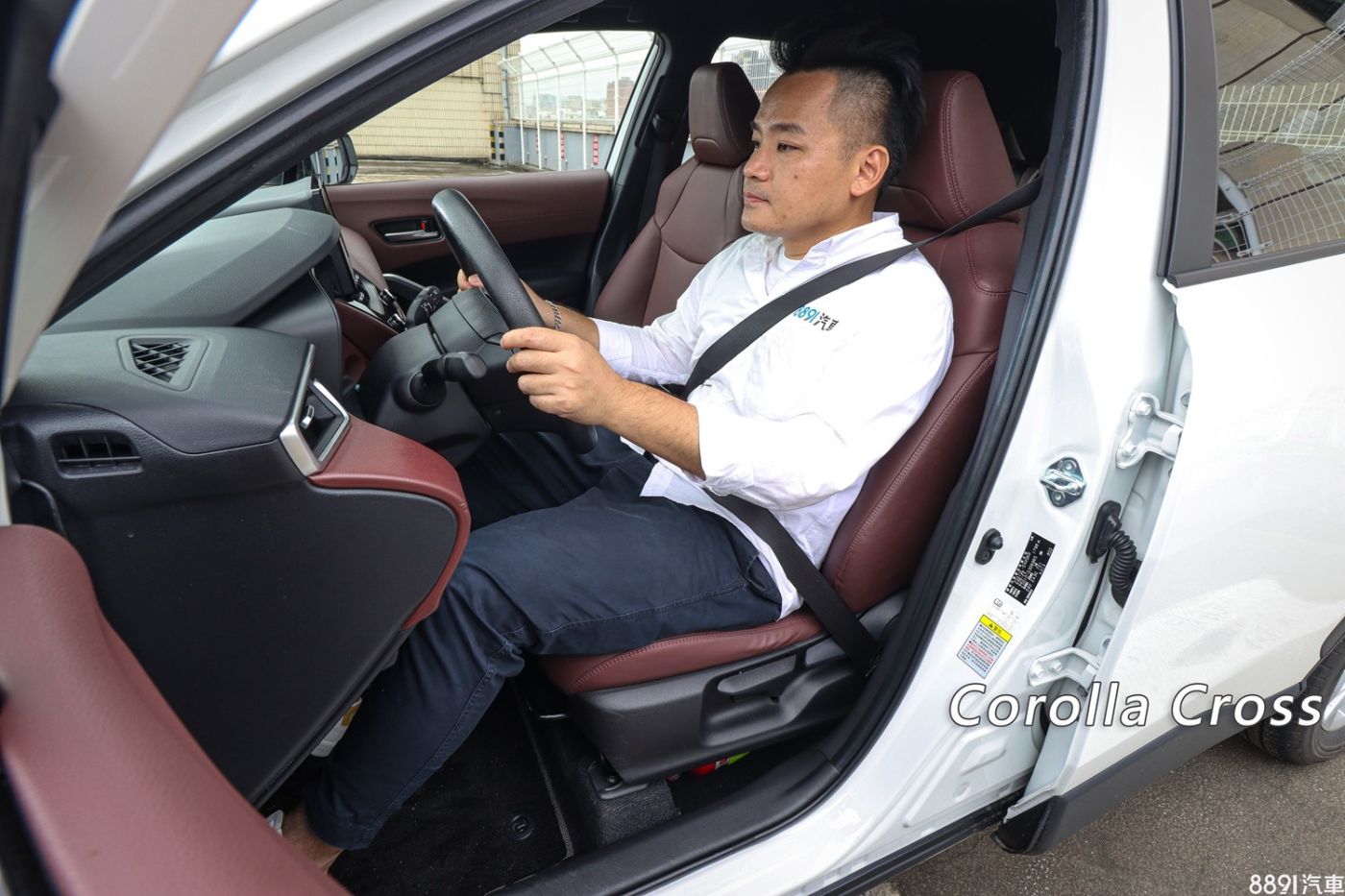 Corolla Cross坐姿、跟方向盤與儀錶的相對位置,比較有包覆感、比較像一般轎車,比起HR-V較高的設定,誰比較好就看個人喜好;前座剪裁以訴求實用的家庭CUV來說,可說兩側包覆有點緊致,帶有運動感,與HR-V設定有點不太一樣,各有特色。