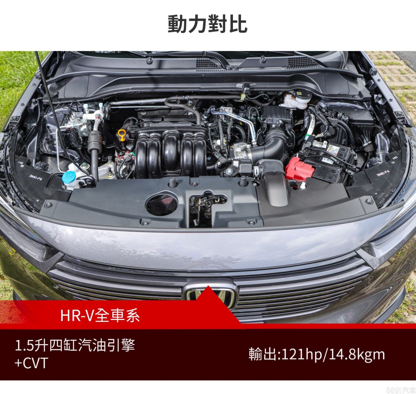 HR-V全車系搭載1.5升四缸自然進氣汽油引擎,搭配CVT變速箱,最大輸出為121hp/14.8kgm,能源局公布平均油耗17.0km/L。