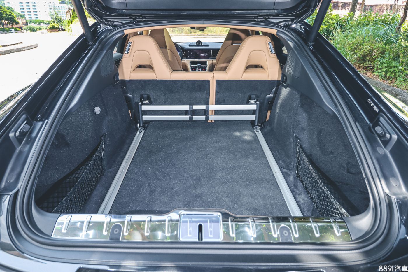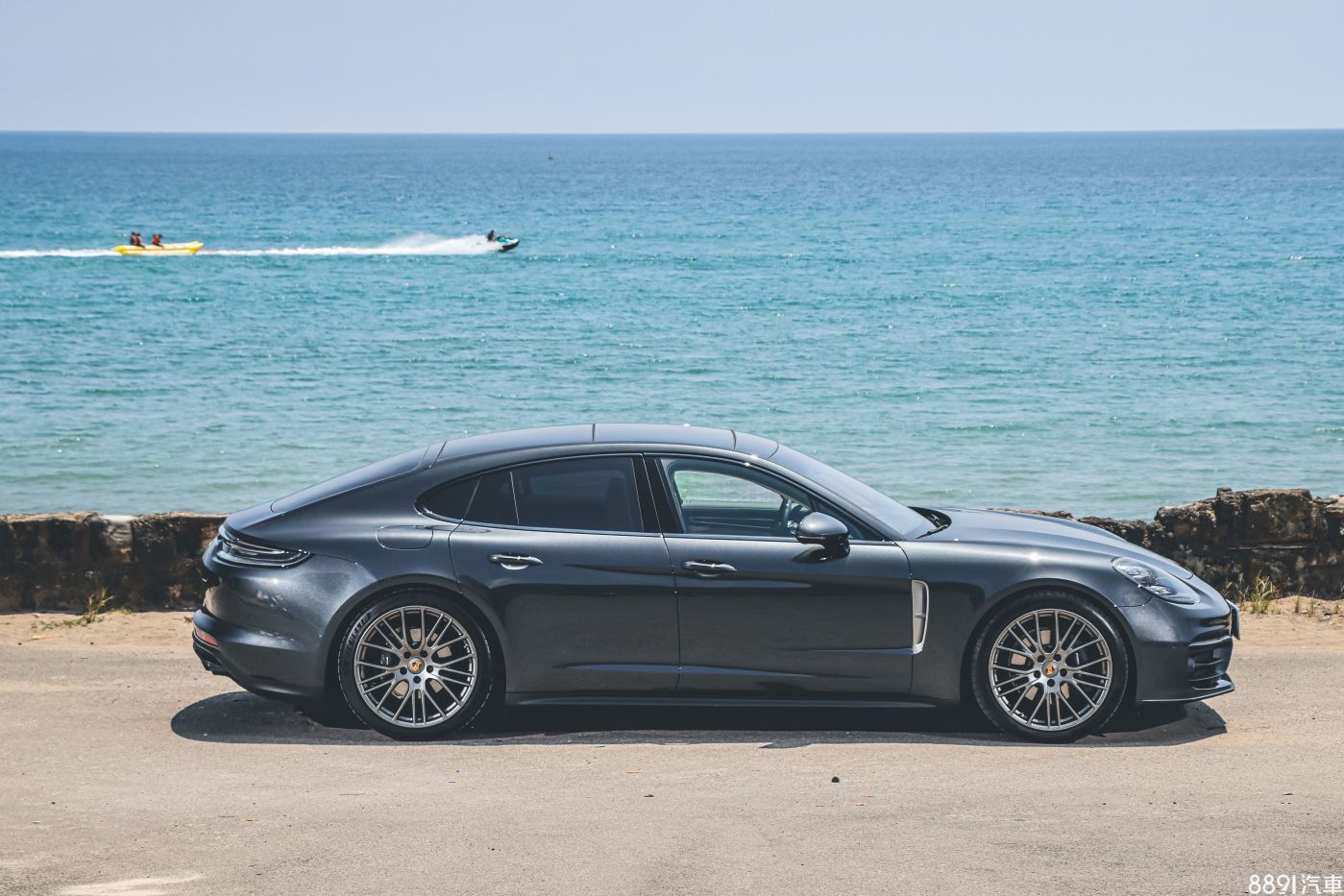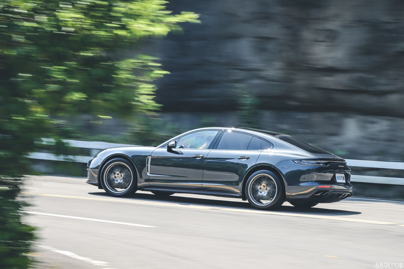 Panamera有5米長的身軀,加上四門跑車的定位,搭配21吋輪圈的視覺感協調,再把氣壓懸吊切到最低的位置,氣勢到位!前葉子板的氣孔採用鉑銀色塗裝,讓車側多些特色,而且不會過於突兀。