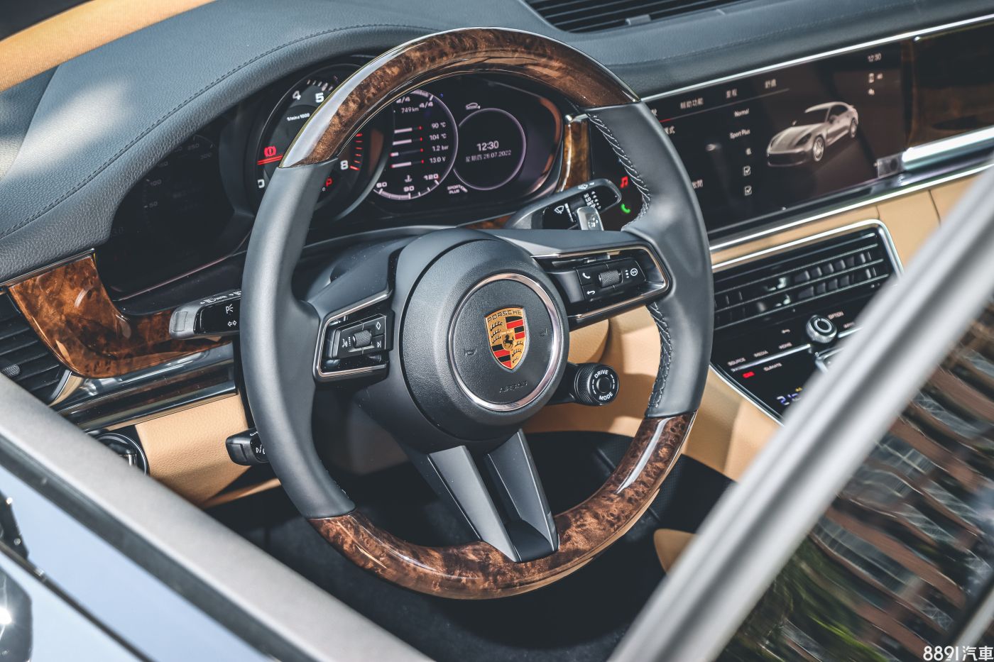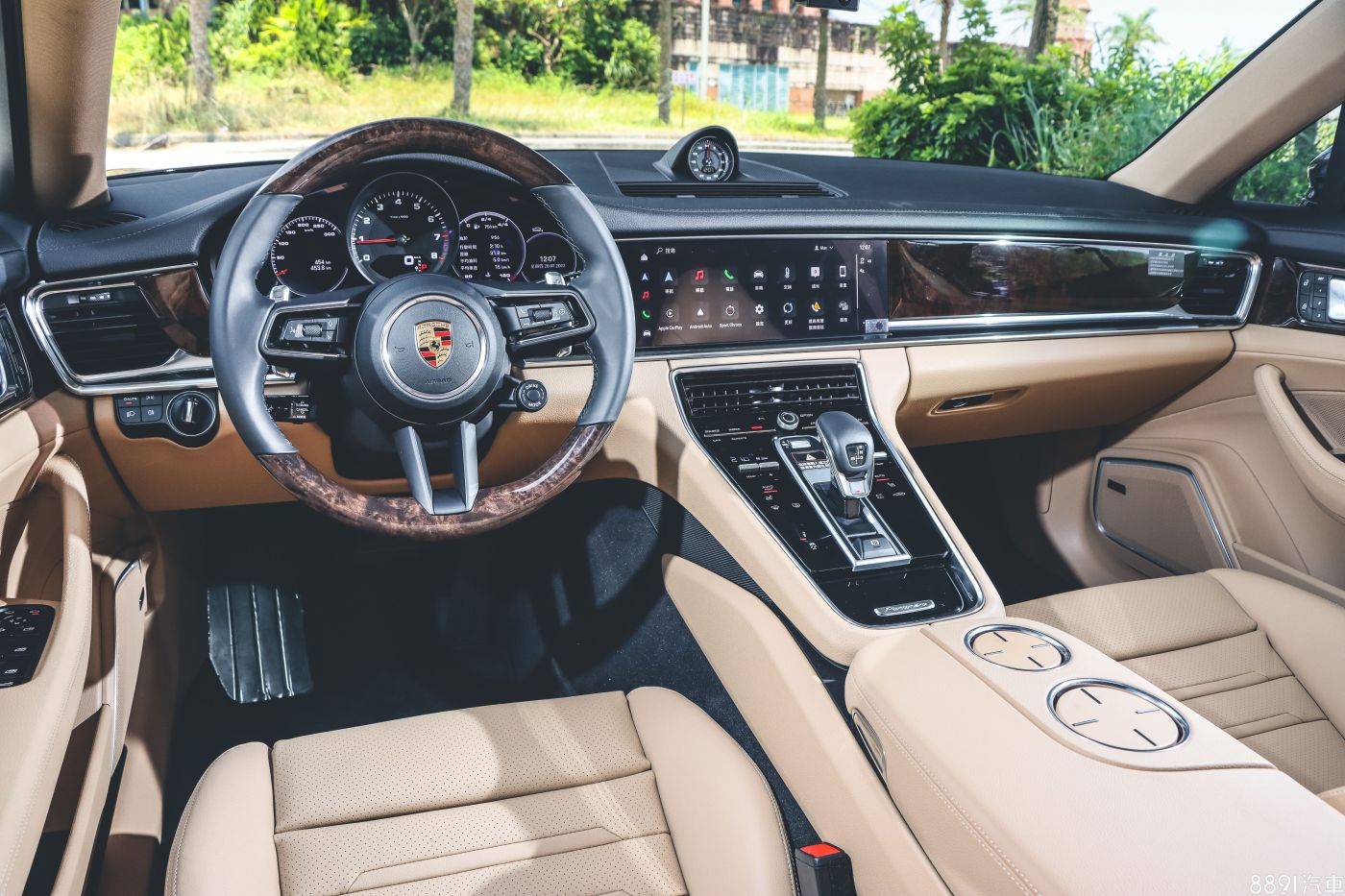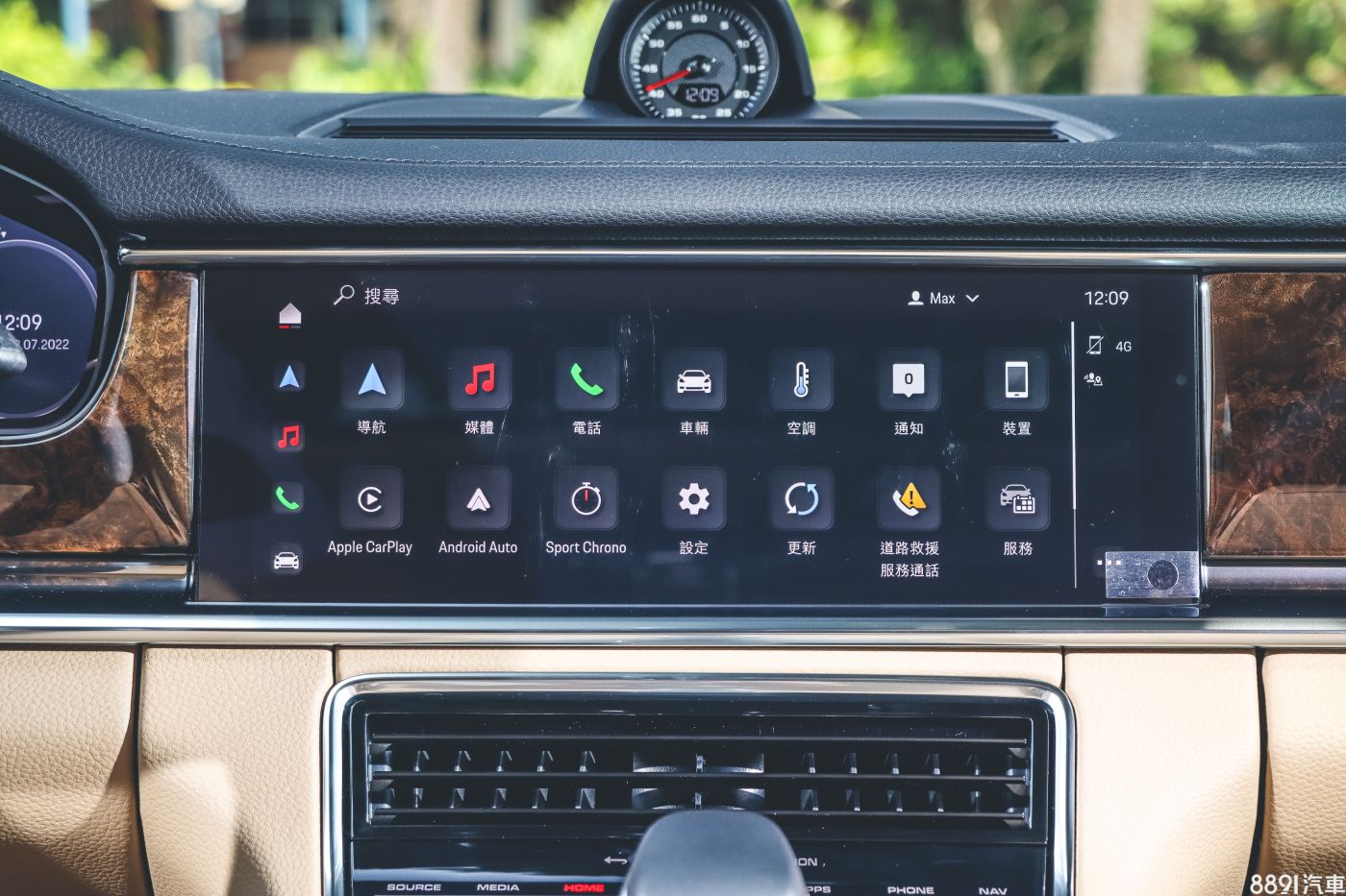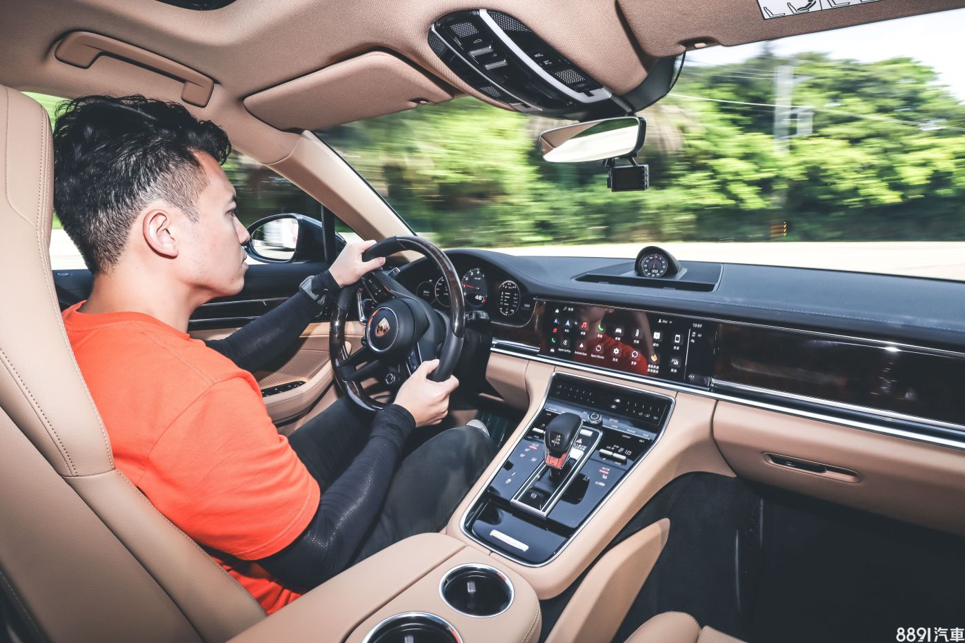 試駕車因為選配深色核桃木內裝飾板套件和雙色真皮內裝,走得是貴氣路線,對應不算兇猛的330hp基礎動力還蠻合理的,而且這車標配車門自動緊閉系統,優雅代步的保時捷旗艦。