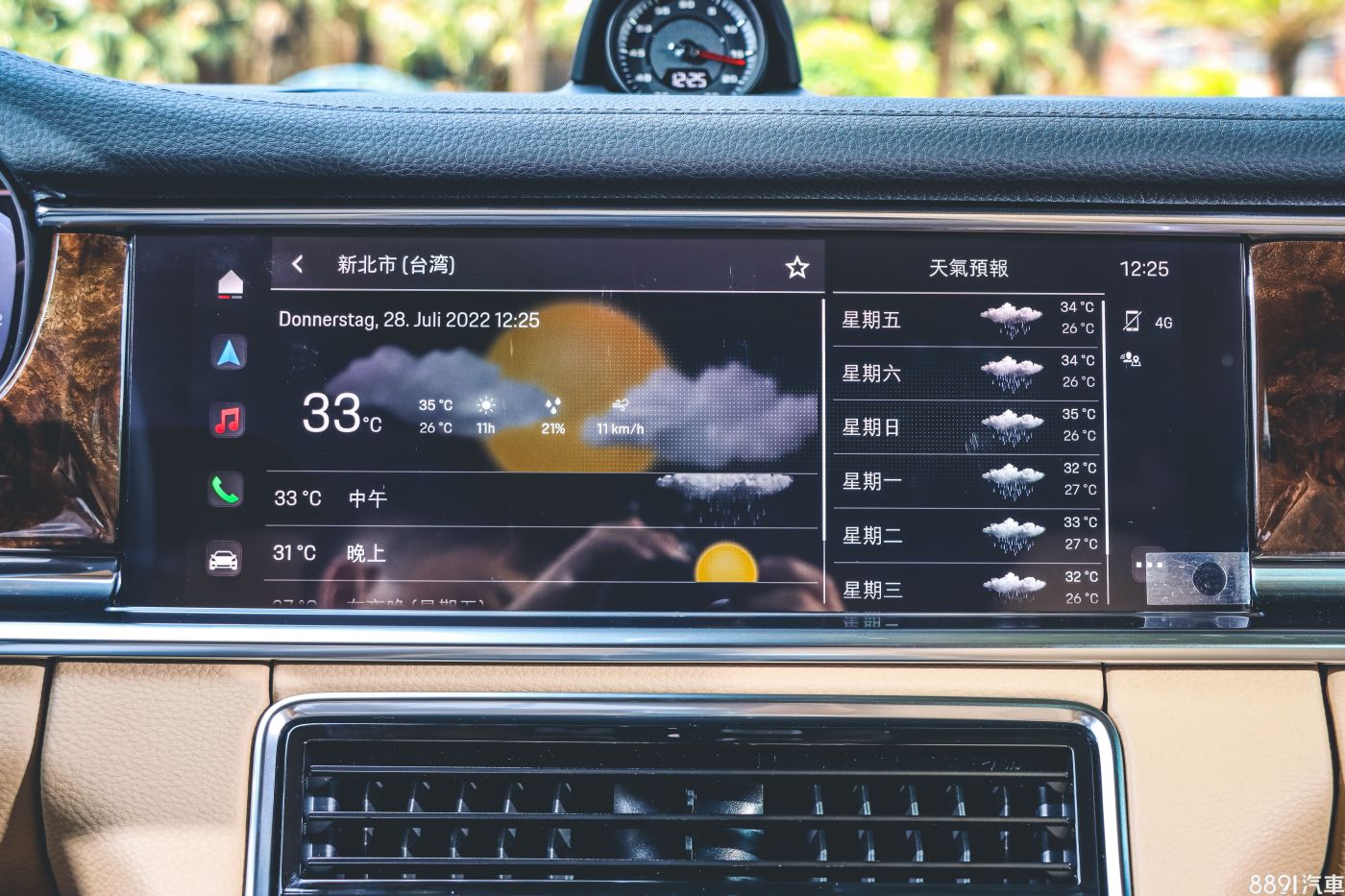 第一次在保時捷車款上碰到皮木方向盤,成熟的氣息,選配價格是2.9萬元(含電熱裝置),作工很精緻,不過有一點小麻煩,停車經過曝曬後,上方木質的觸感會有點燙。