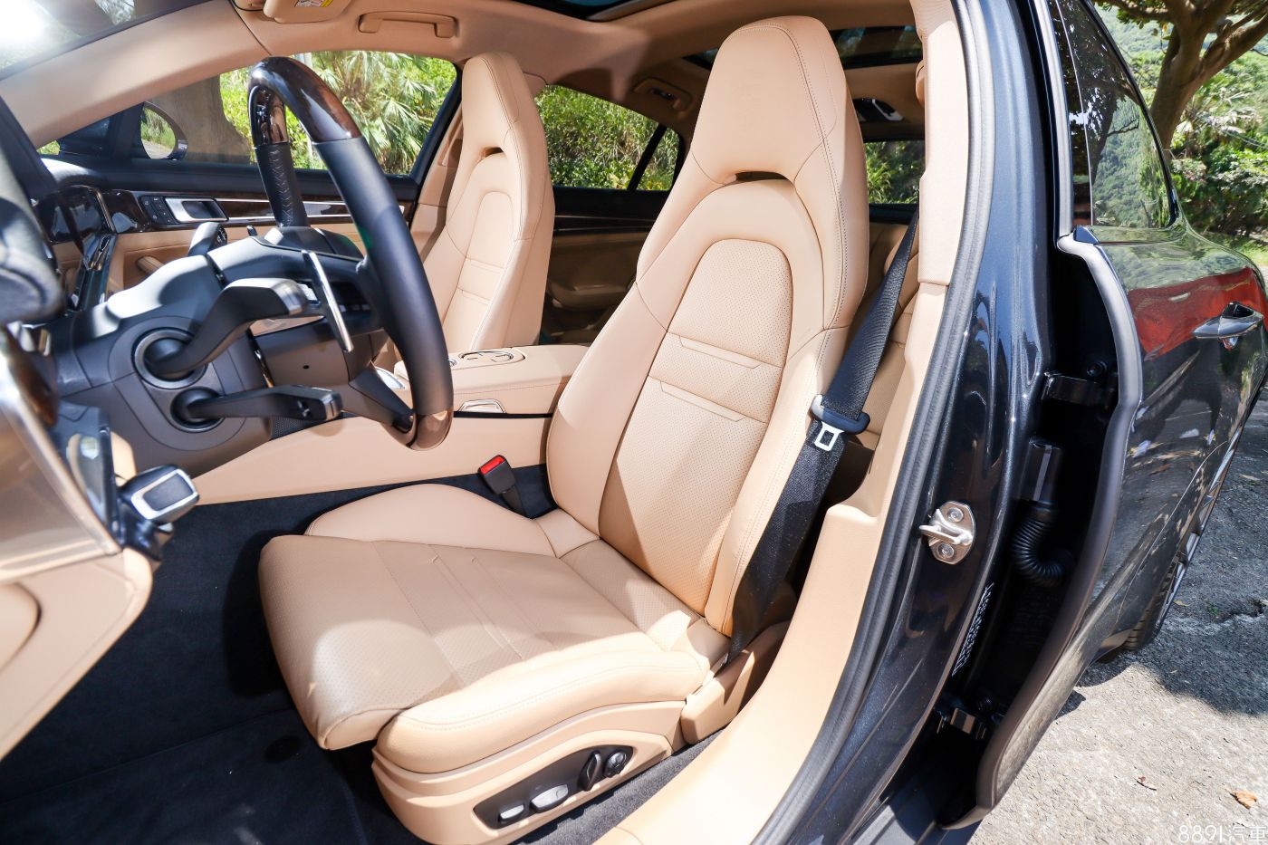 Panamera終究是四門跑車,名為14向電動調整舒適座椅,造型還是很跑格,乘坐感沒什麼能挑剔,舒服、包覆性好,可以調整的部位多,不過只標配加熱功能,涼爽的通風功能要加價7.08萬元。