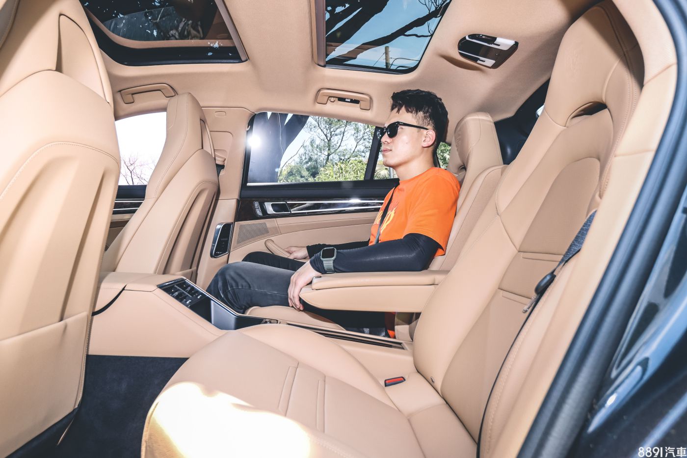 後座兩張獨立座椅是Panamera標準配置,換成5人座的代價是5.57萬元,乘坐感受接近於前座,椅背角度不可調,不過整體坐姿設定理想,175cm的男性示範下,膝部空間充足,頭頂則因為標配全景天窗,有效降低壓迫感。