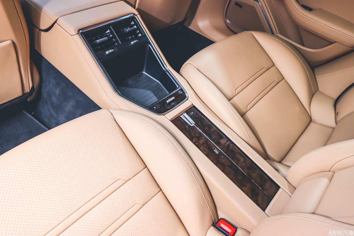 分隔座椅的中央鞍座有一處不小的儲物格,如果選配四區恆溫會變成空調控制面板,後頭的蓋板下則是兩格杯座。