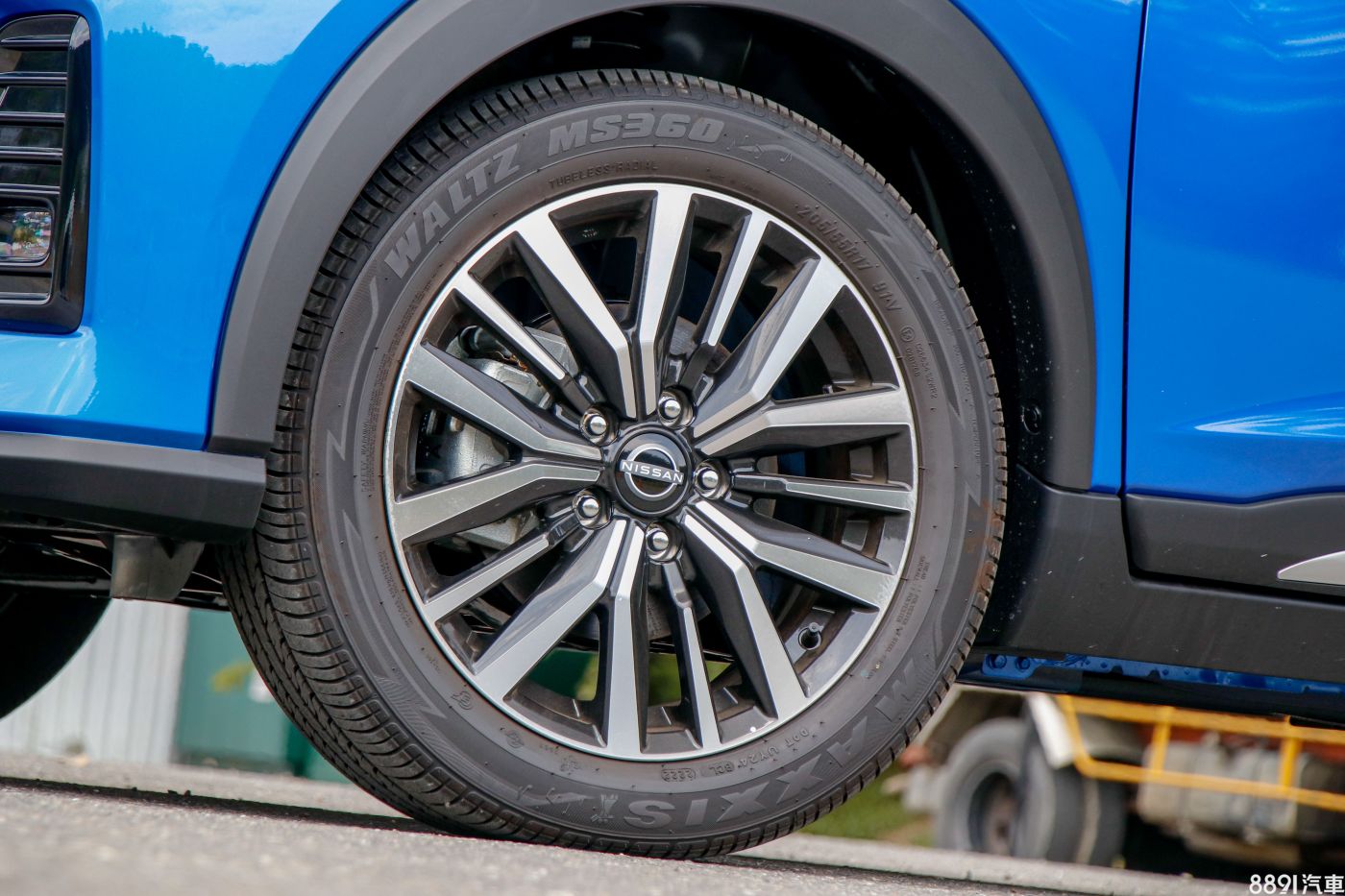試駕的旗艦版採用17吋雙色輪圈,多幅式看起來有些複雜,但質感不錯,配胎為瑪吉斯Waltz MS360,是以節能舒適為取向,適合日常通勤代步使用,符合Kicks定位。
