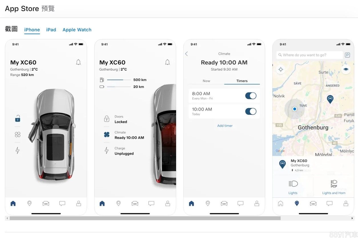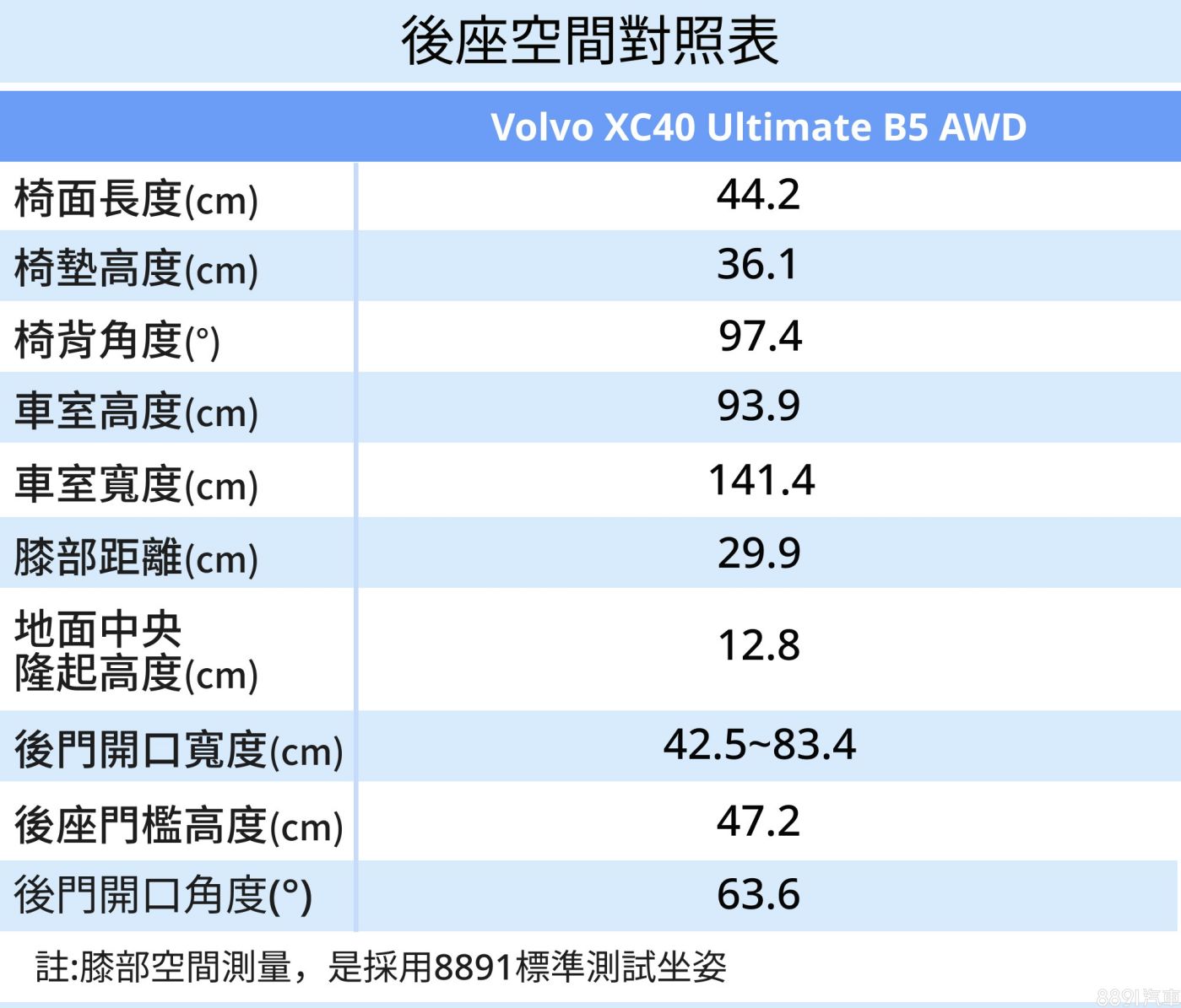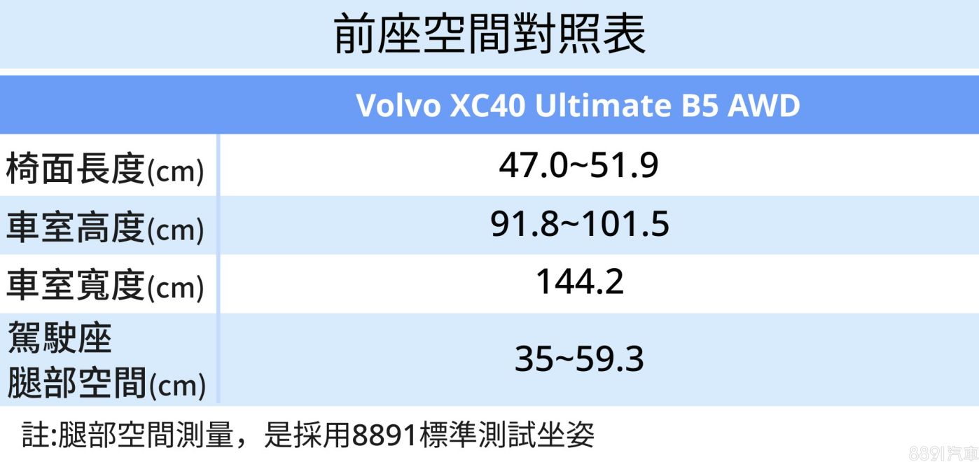 不管是Apple iOS或Android裝置都可以下載Volvo Cars App,像圖中說明,連Apple Watch這類穿戴裝置都可以安裝,超方便!等於手指動一動,就可以預先開啟車輛空調,這在夏天很實用,其他重要功能包含車輛即時位置、上鎖/解鎖車輛,甚至可以預約回廠服務,已經跟上現在什麼都要智能化的時代。空間測量表格