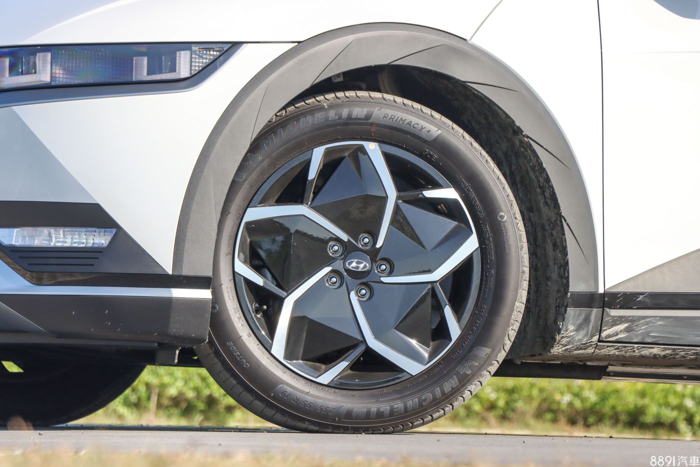 Ioniq 5 EV400標配19吋鋁圈,雙色切削處理還蠻精緻的,輪拱還有模擬捲動效果的線條,一些細節巧思合乎這車強調的設計感,配胎是235/55R19的米其林Primacy 4,舒適取向,對應Ioniq 5 EV400的動力大小也夠用了。