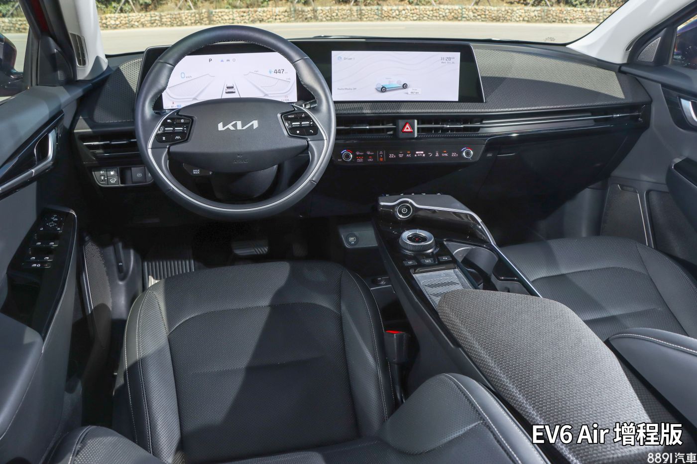 EV6坐椅泡棉設定偏硬挺,坐起來不像Ioniq 5般柔軟放鬆,真的要激烈操駕,腰部兩側與大腿支撐也不夠,乘坐感略遜一籌;但單論坐椅造型,頭枕造型特別,椅背還能當成掛勾,多了點小巧思。由於是高規的Air 增程版,通風、加熱、雙前座電動調整全都有,為舒適度加分。