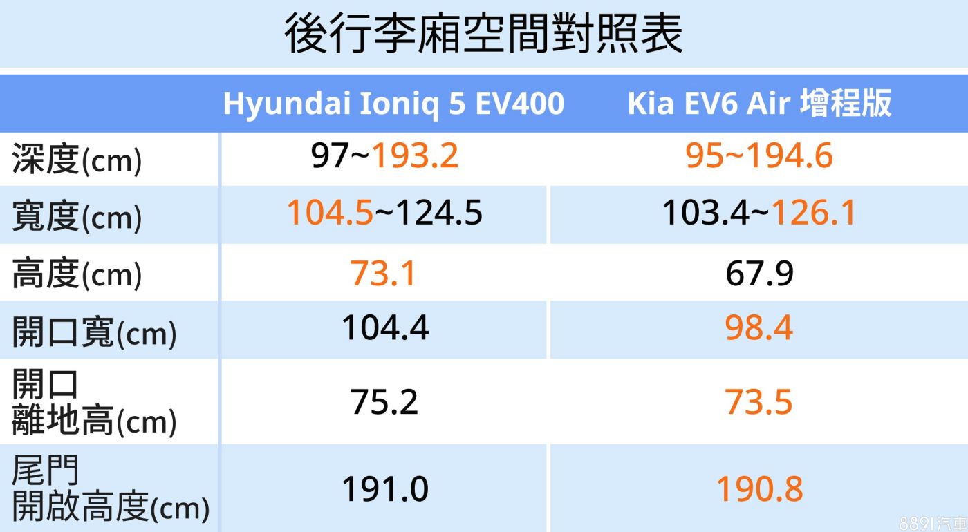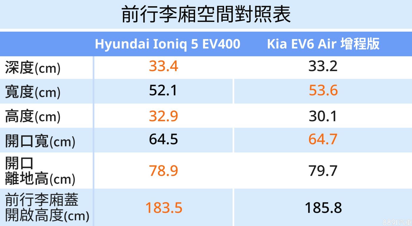 兩車在前艙都有預留行李廂空間,量測差異有限,僅 Ioniq 5在廂內高度部分多了2.8cm,其餘都只差1cm左右,目測廂內造型也相仿,實際使用感受沒有差別。