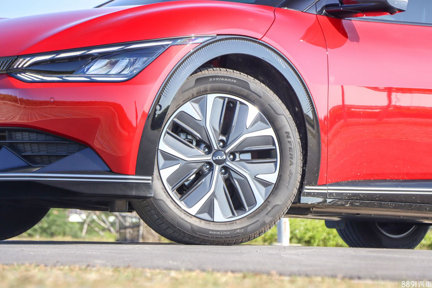 一樣是19吋雙色鋁圈,看起來是Ioniq 5 EV400更特別一點,搭配235/55R19的Nexen Nfera Sport EV,因應電動車更高的車重和扭力設計,並且更著重肅靜程度。