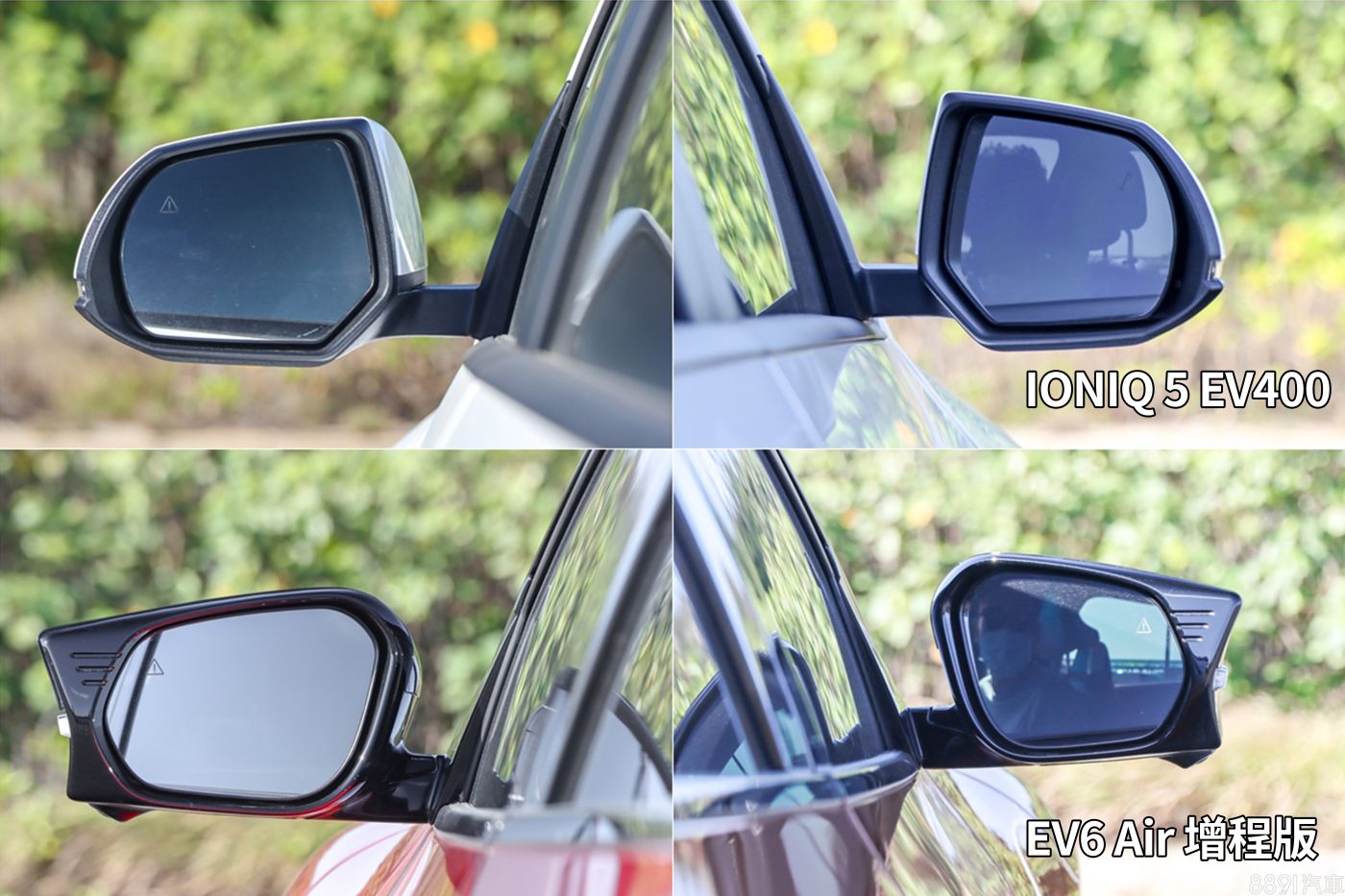 Ioniq 5窗戶面積大,A、B、C柱遮擋也更少,多數盲區角度都比較小,唯獨右A、右C柱因內飾造型讓數據略差,總遮蔽率僅有19.3%,比EV6的26.0%好上許多。EV6 Air 增程版由於配備等級較高,多了360環景攝影系統,停車時能起到輔助效果。