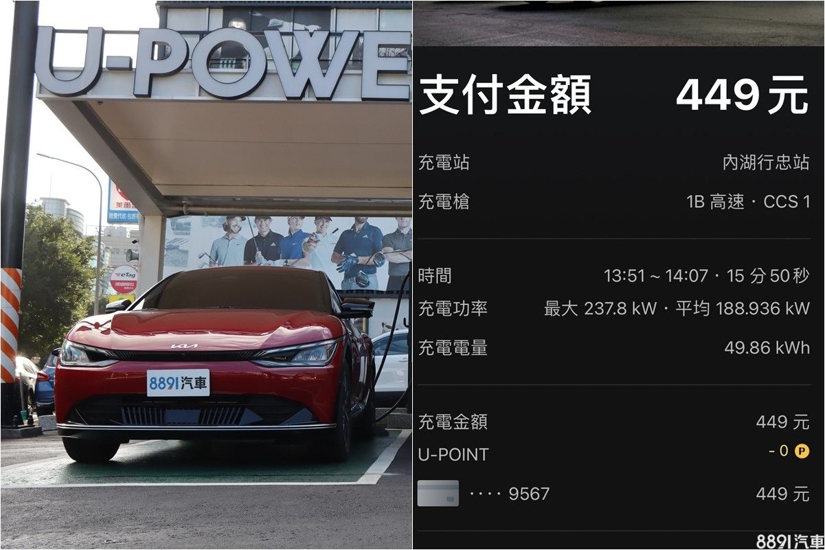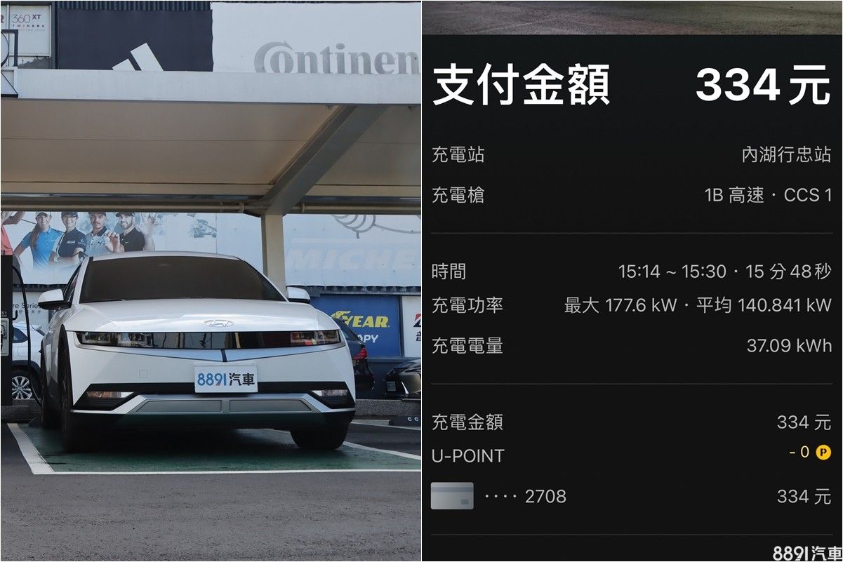 試算電耗花費,EV6 Air 增程版(高速6.3km/kWh、市區6.8km/kWh),Ioniq 5 EV400(高速6.1km/kWh、市區7.3km/kWh),以第三方充電站公告每度電收費9元計算,換算下來每公里電費很接近,分別為1.36元、1.35元,具體來舉例,就是台北開到高雄電費花不到500元,真的有夠省!