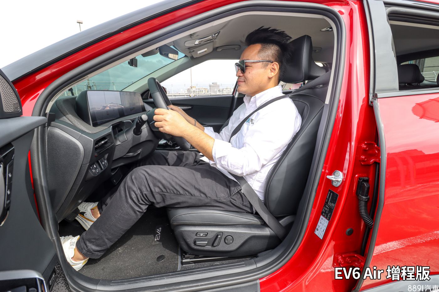 跟Ioniq 5 EV400比起來,EV6 Air 增程版多了約100kg(1959kg),和Ioniq 5 EV600(1962kg)對照一下可以知道,等於是因為電池大小的關係而產生重量差異,也因為如此,多出的負擔都在車底,EV6 Air 增程版開起來沒有感到特別沉重的狀況,靈活度和Ioniq 5 EV400差不多。