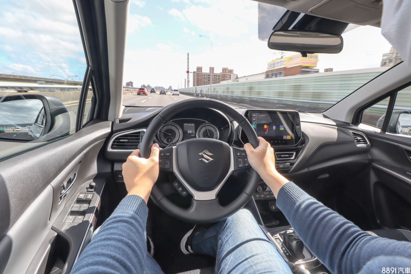 首先進入高速測試階段,縱使ALL NEW S-CROSS在改款後導入全速域ACC跟車系統,但為確保量測基準性,我們全程不開啟ACC、也不使用車輛本身定速功能,全靠單一駕駛的黃金右腳施以平順的加減速力道,保持在既不超速也不落後車流的行駛狀態。