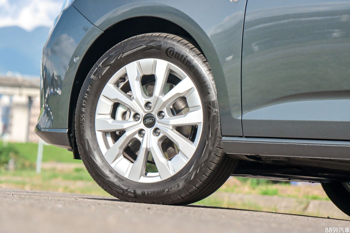 入門搭載16吋鋁圈,試駕的高規版升級至17吋,搭配215/55R17的馬牌Eco Contact 6,主打靜肅與節能性,鋁圈造型樸素耐看,符合舒適家庭用車定位。