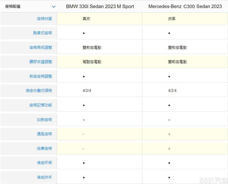 兩車都配置運動型座椅,按照先前的試車經驗,立體剪裁造型,支撐性與包覆度有一定水準,不過C 300雙前座均標配電動腰靠+記憶功能,相較於對手僅駕駛座有,實用性上還是有差。此外,選配項目也是賓士的強項,除了常見的加熱、通風外,也有供按摩功能,尊榮度加分不少。