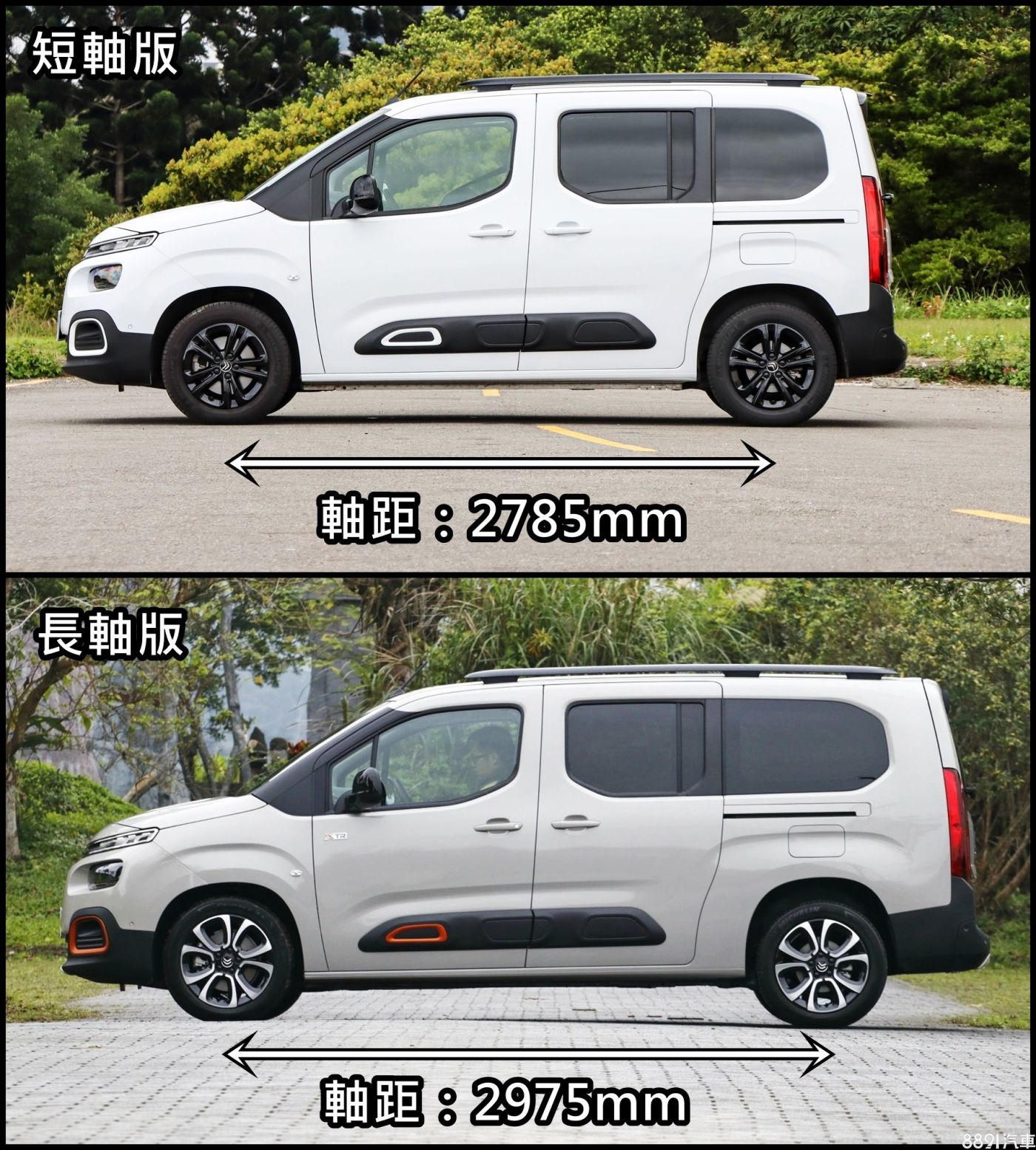 Berlingo長、短軸版最大的差異自然是車長與軸距,對比車身尺碼,短軸版車長4403mm、軸距2785mm,分別比長軸版短了350mm、190mm,差距頗為明顯,從上圖更能清楚看到兩版本最明顯差異就是在尾廂的長度。