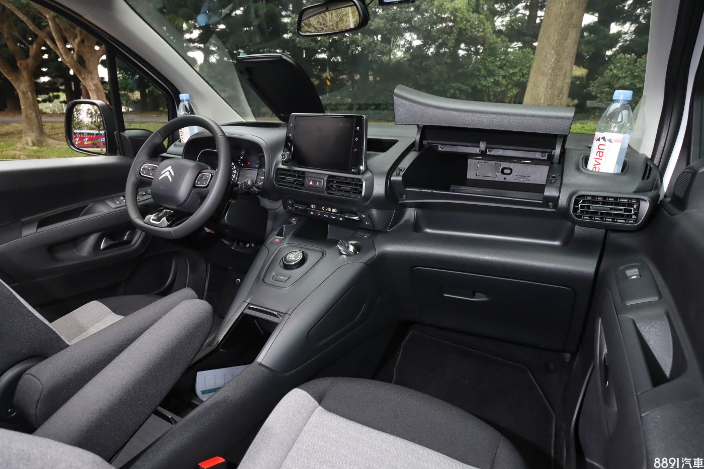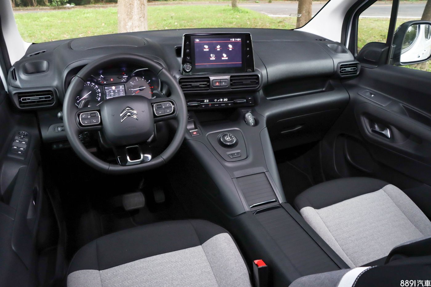 短軸版座艙格局與長軸版如出一轍,有著高聳的中控台與排檔座,置身其中,多了一點包覆感,內裝用料多為硬塑料組成,以這類車款來說算是常見,個人認為以Berlingo外觀的吸睛度,多一點配色、飾條妝點會更加分。儀錶板為傳統指針+中央顯示幕,雖然是簡體中文,但並不影響判讀,8吋多媒體系統畫面編排簡單、不花俏,並支援有線Apple CarPlay/Android Auto連線功能。