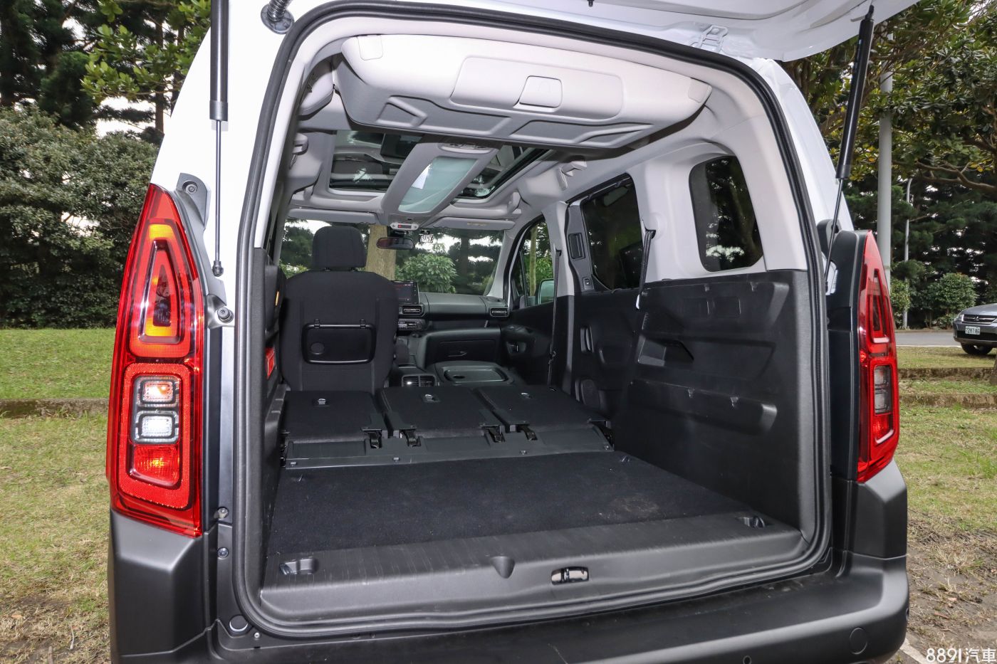 後座完全倒平後,可以發現整個平台相當平整,並能創造出3000L的超大置物空間,若是嫌這樣還不夠用,還可將副駕駛座收折,便可額外爭取500L的容積量,長型物品的擺放也更有彈性。