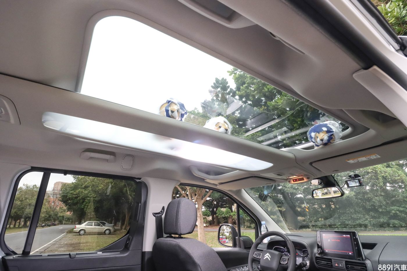 Modutop全景玻璃車頂,這配備在全車系中僅有五人座高規版獨享,比起標準的五人座,多了玻璃車頂附電動遮陽簾、中央透明儲物空間、後方頂置式儲物箱等配備,除了可以讓更多自然光灑進車內、增添採光外,置物機能也變得更加豐富,或者該說是「浪漫」。
