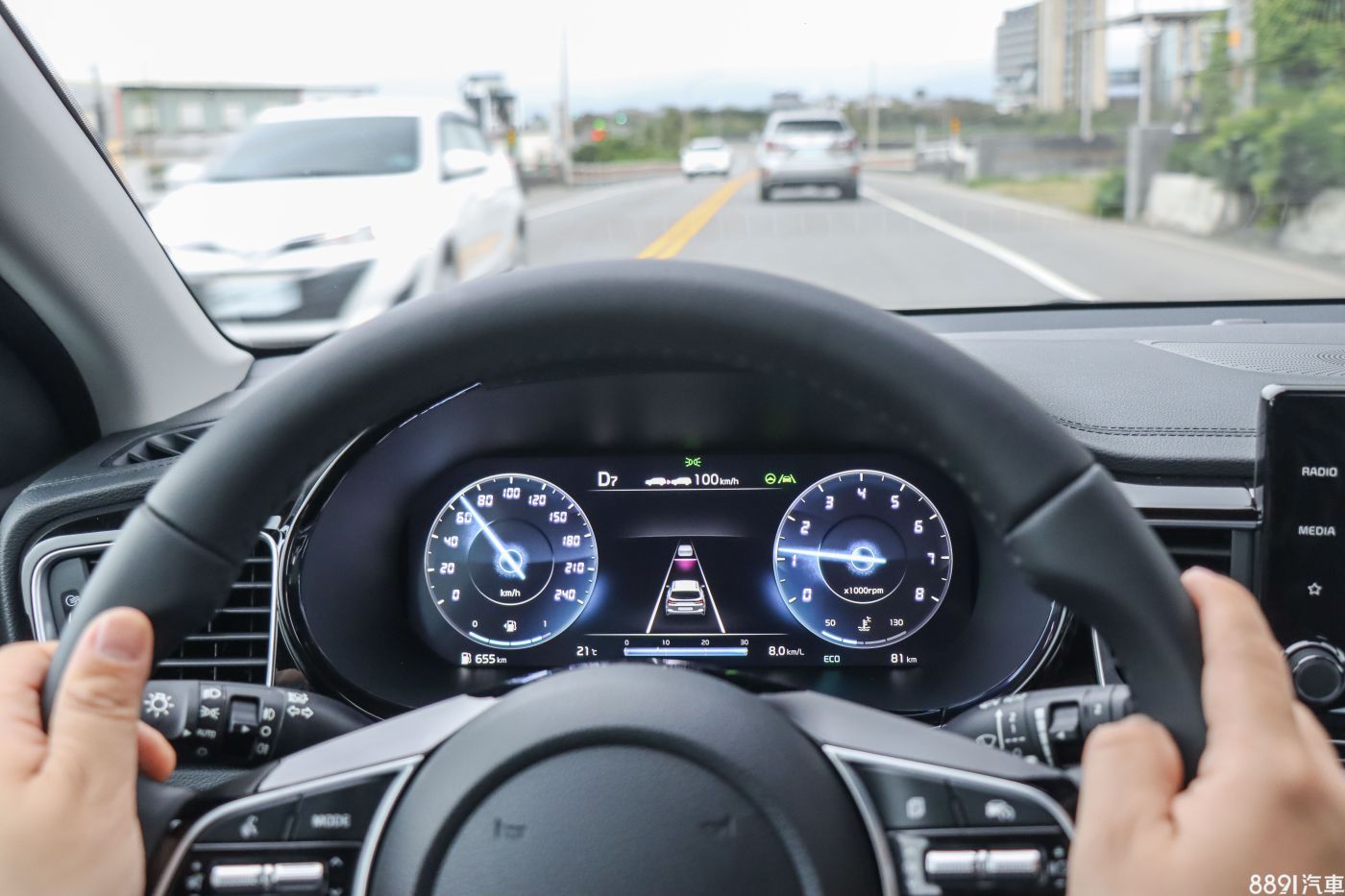 油耗之所以會如此漂亮,主要得歸功於Eco模式下具備「熄火滑行模式」,系統可於時速30~120km/h中作動,基本上只要在行駛中鬆開油門,該功能便會馬上啟用,說真的!要不是儀錶上顯示的「Sailing」的字樣及帆船圖示,否則會很難察覺其存在,即便過程中油門補下,引擎的介入也是「無縫接軌」,相當平順。
